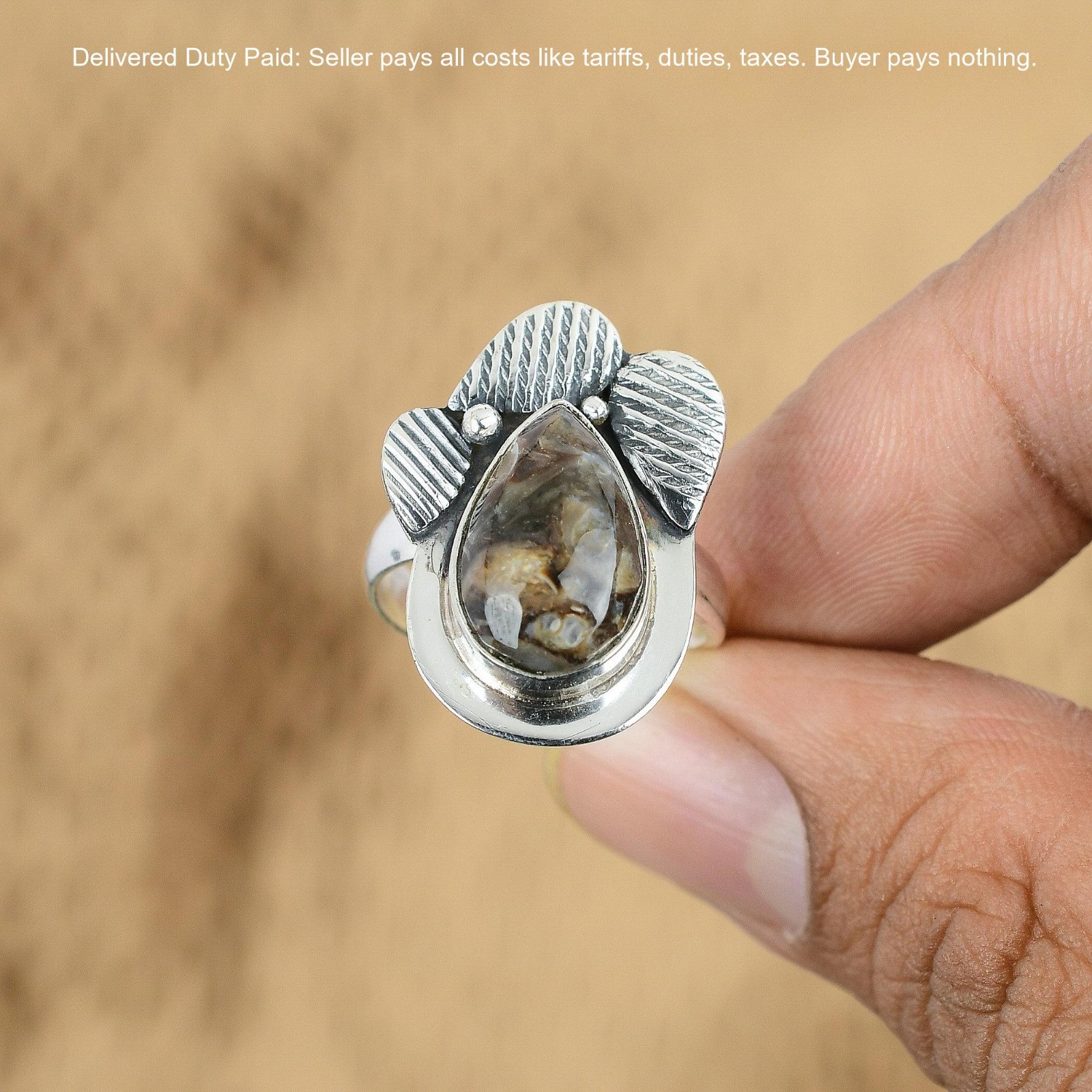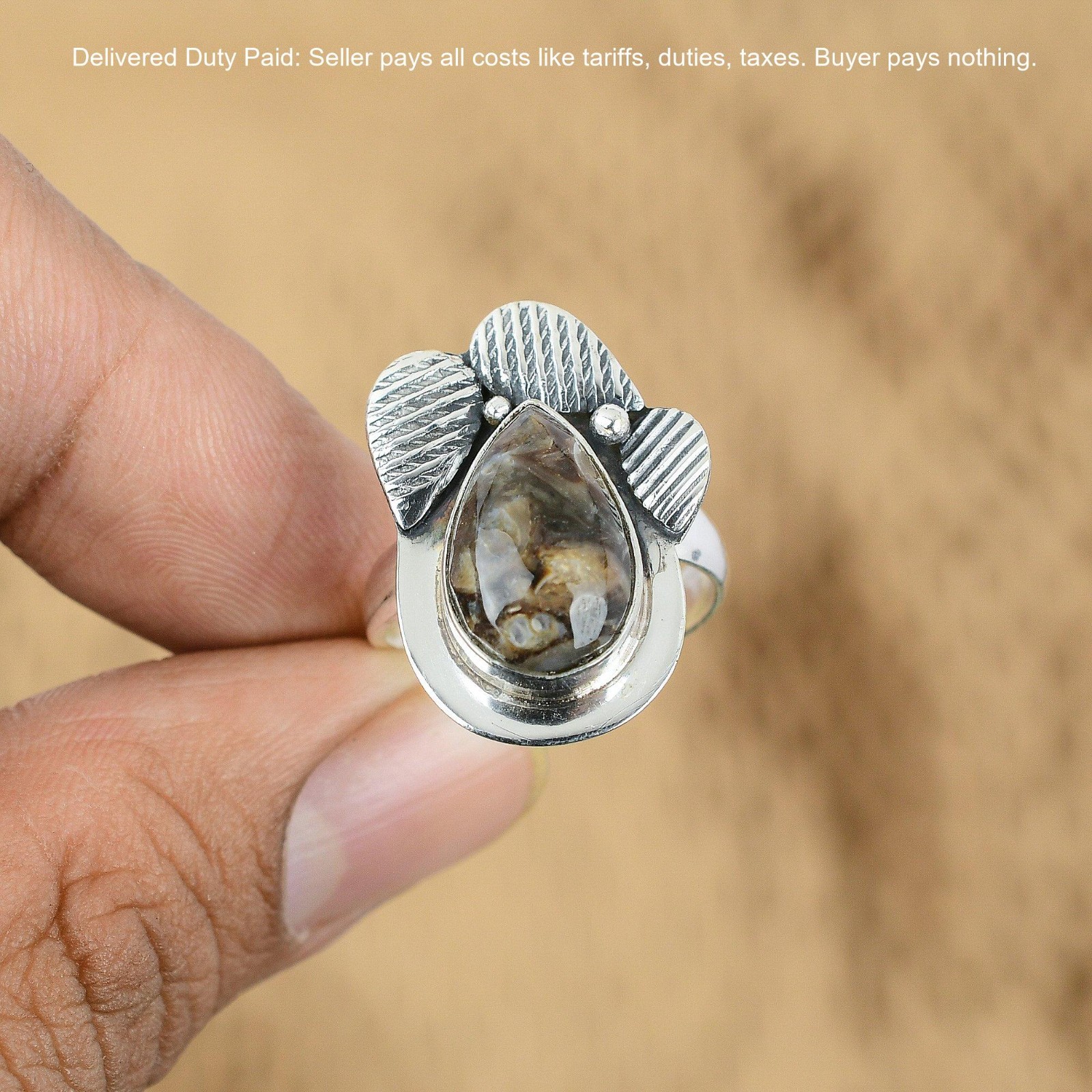 Certification: 100% Genuine Natural Turritella Agate Ring
