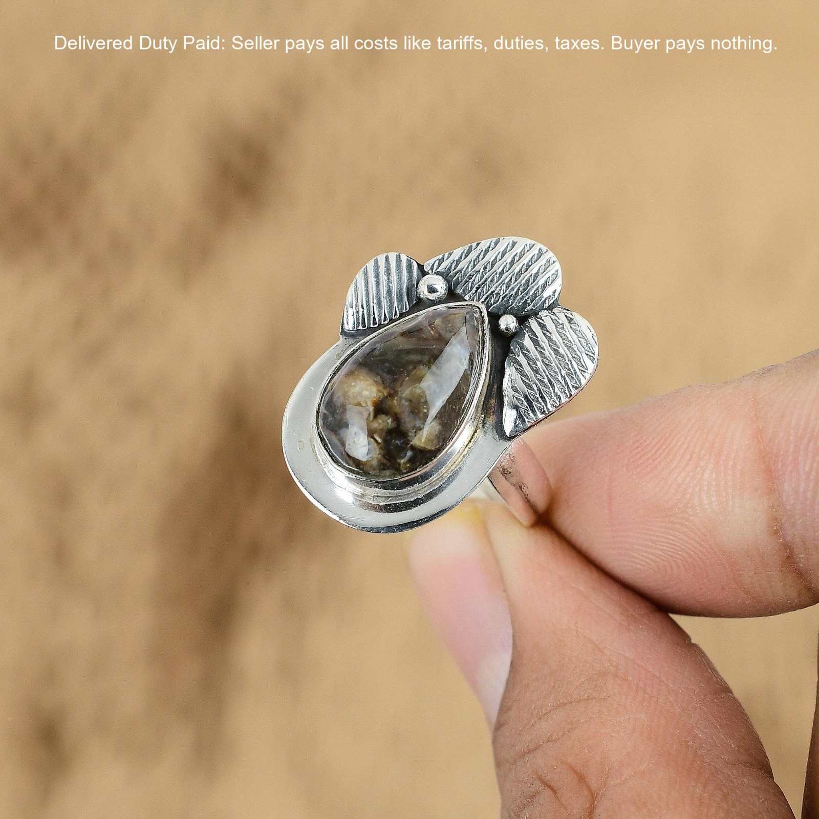 как выглядит Valentines Sale 925 Sterling Silver Turritella Agate Stone Birthday Ring Jewelry фото