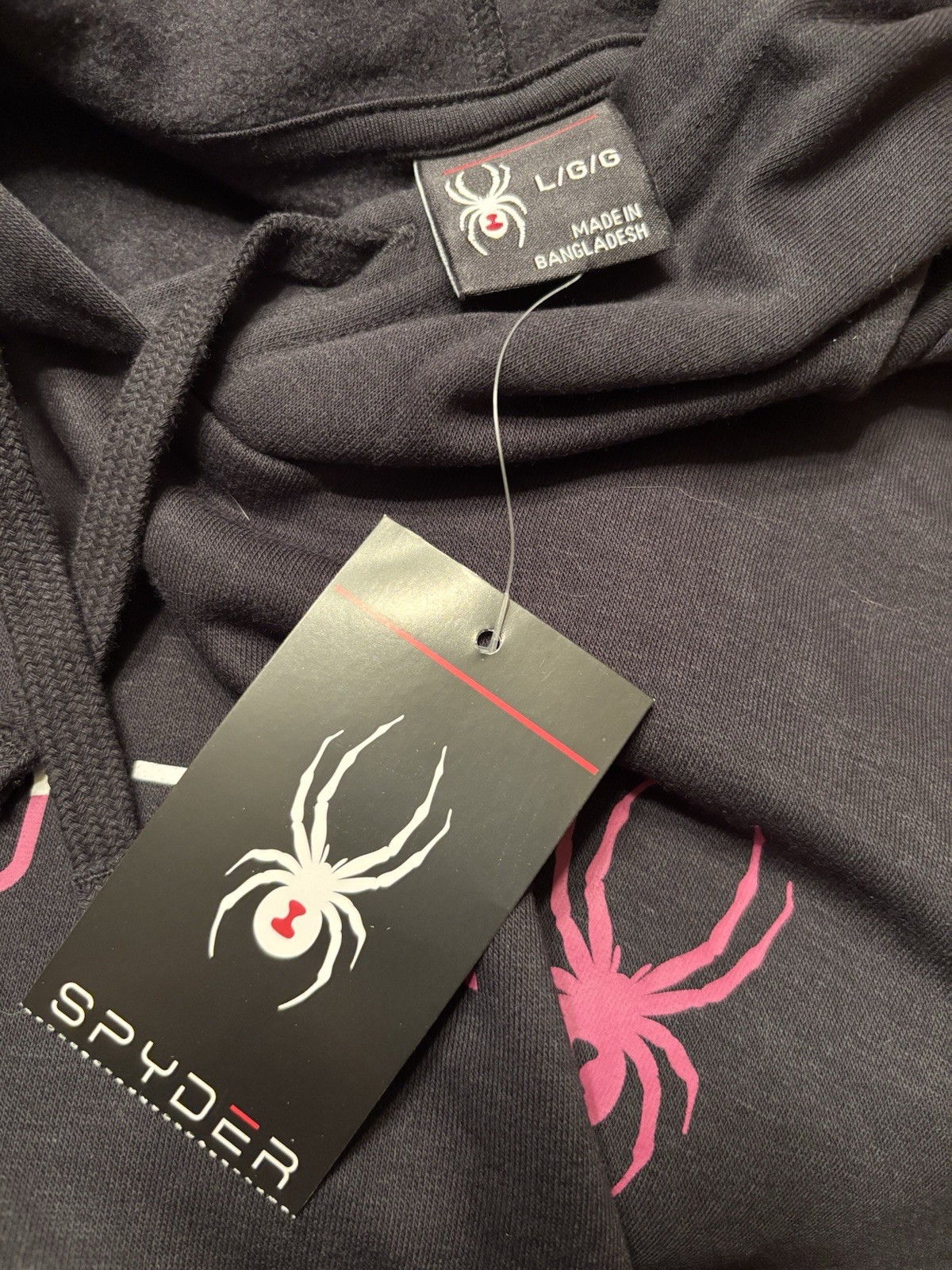 Spyder Hoodie Sweatshirt Black Pink Logo Kangaroo Pocket Women s Size L New