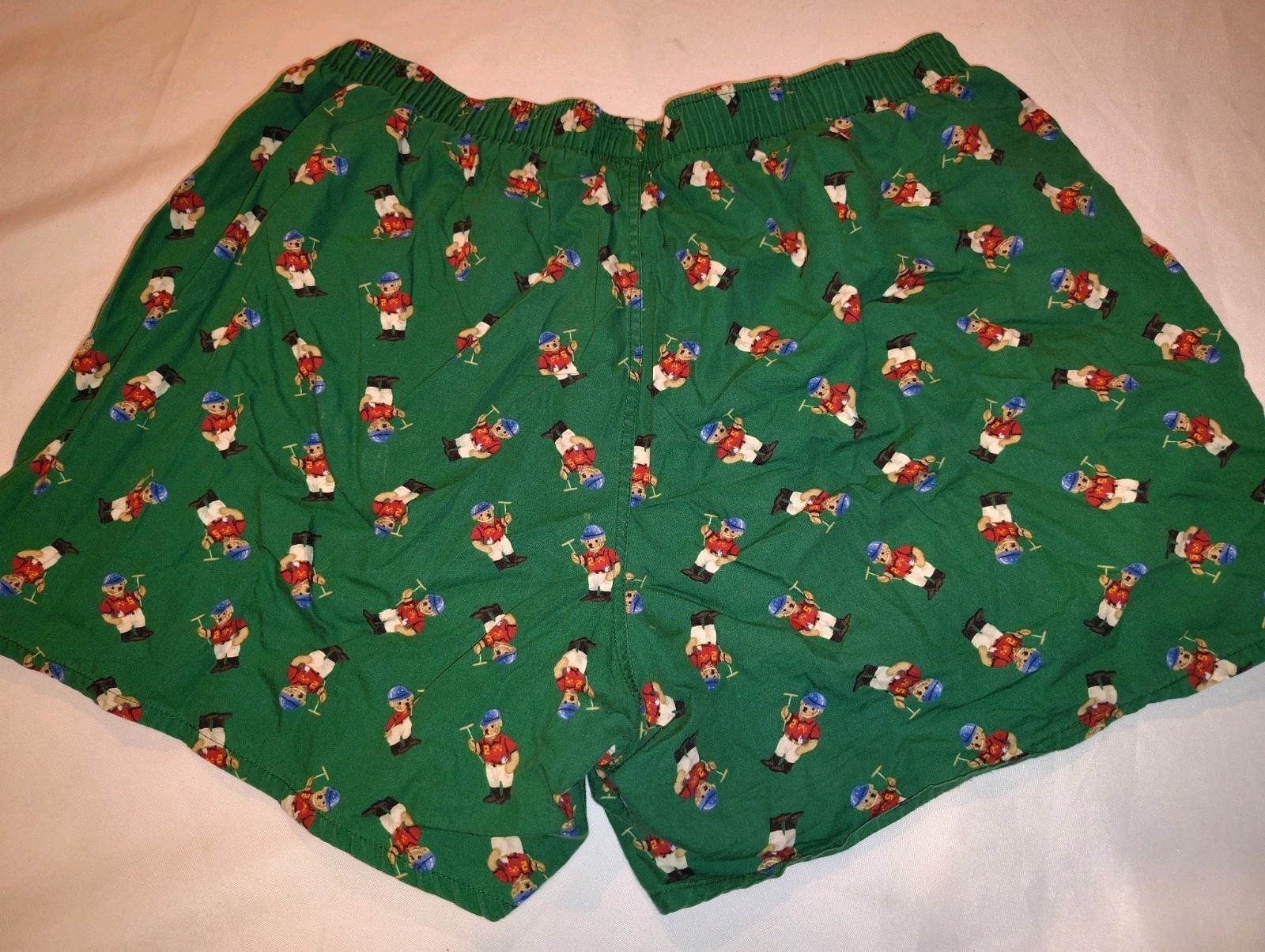 Vintage Polo Ralph Lauren Polo Bear Men's LARGE Woven All Over Bear Boxers Green
