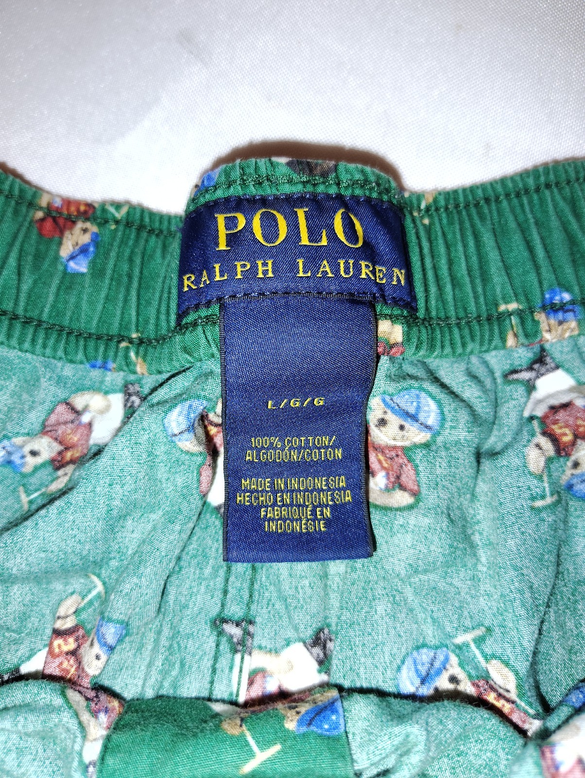 как выглядит Vintage Polo Ralph Lauren Polo Bear Mens LARGE Woven All Over Bear Boxers Green фото