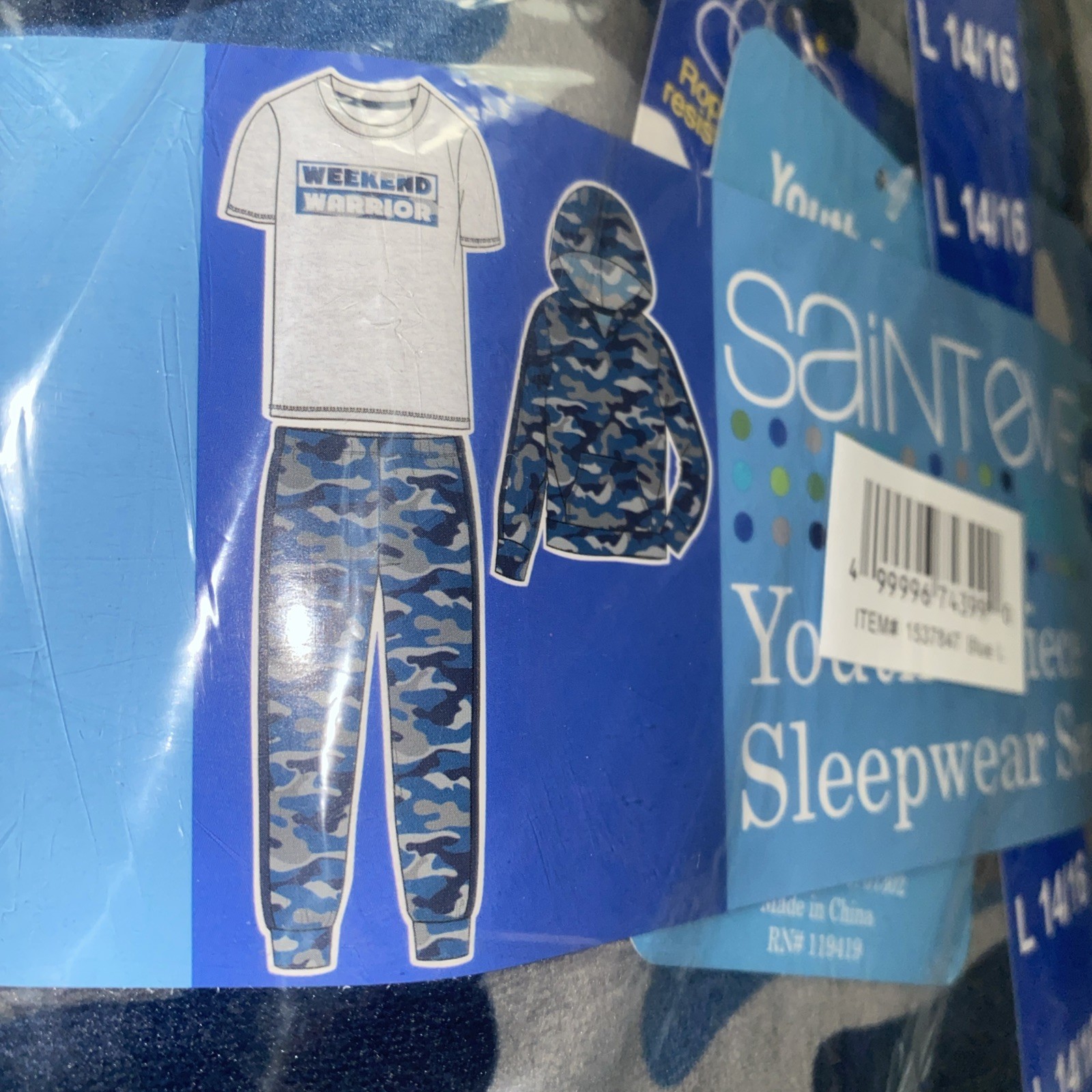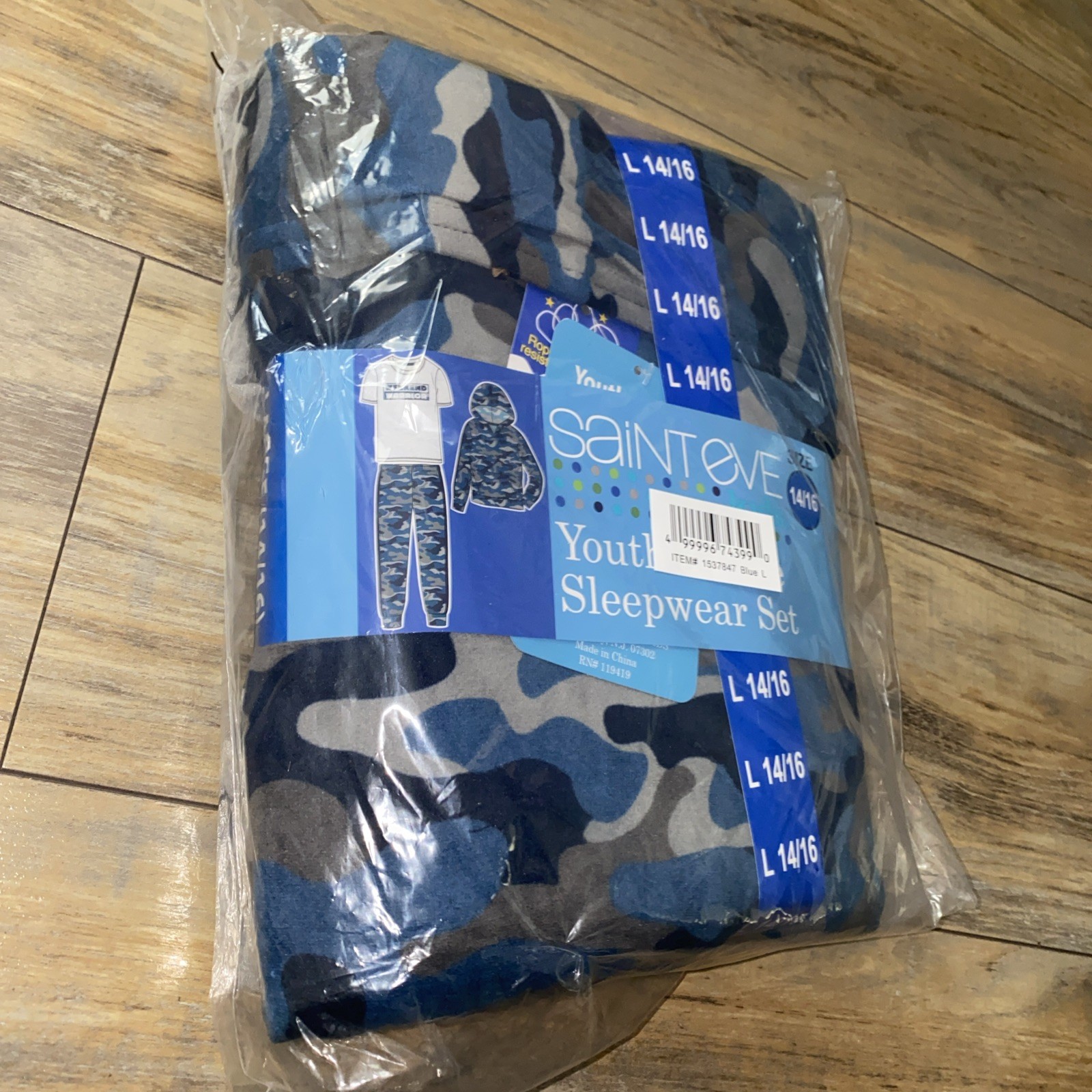 Saint Eve Boy's 3-piece Pajama Set Pant Tee Hoodie CAMO L 14/16 NWT