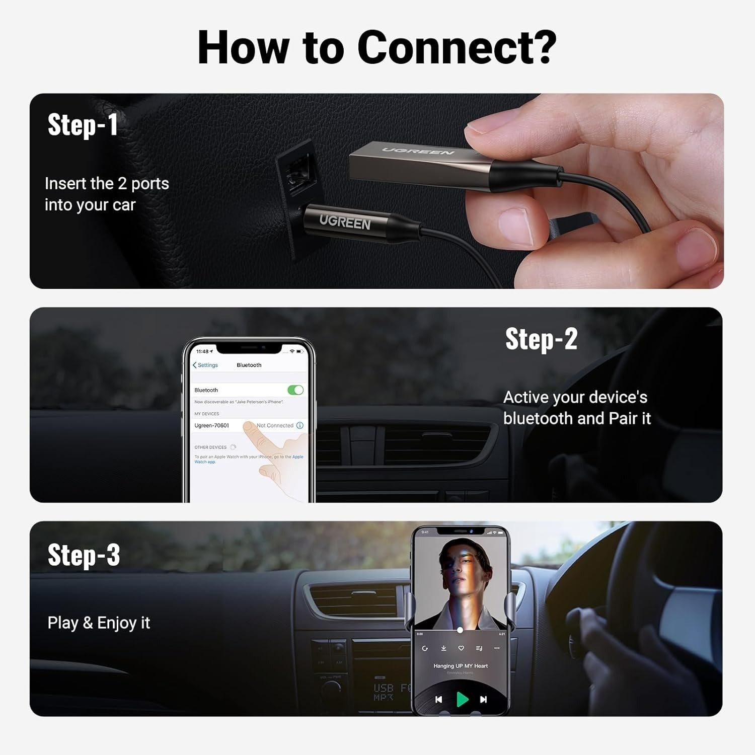 как выглядит Aux to Bluetooth 6.0 Adapter 3.5mm Bluetooth Receiver for Car USB 2.0 to 3.5m... фото