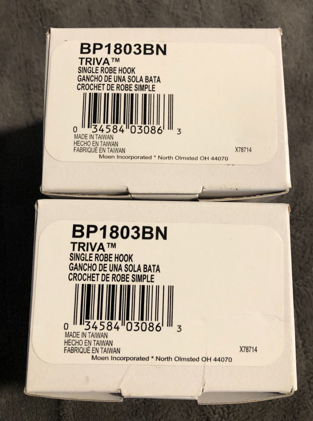 New Lot Of 2 Moen Triva Single Bath Robe Hooks Brushed Nickel BP1803BN
