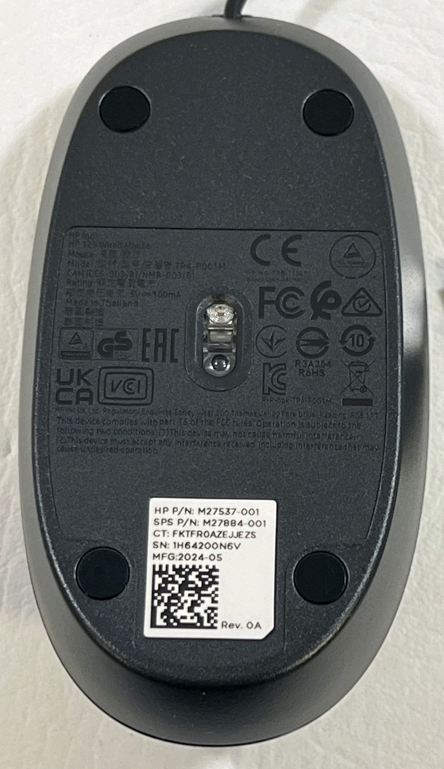 HP 125 USB Wired Desktop Mouse M27537-001 Sealed New