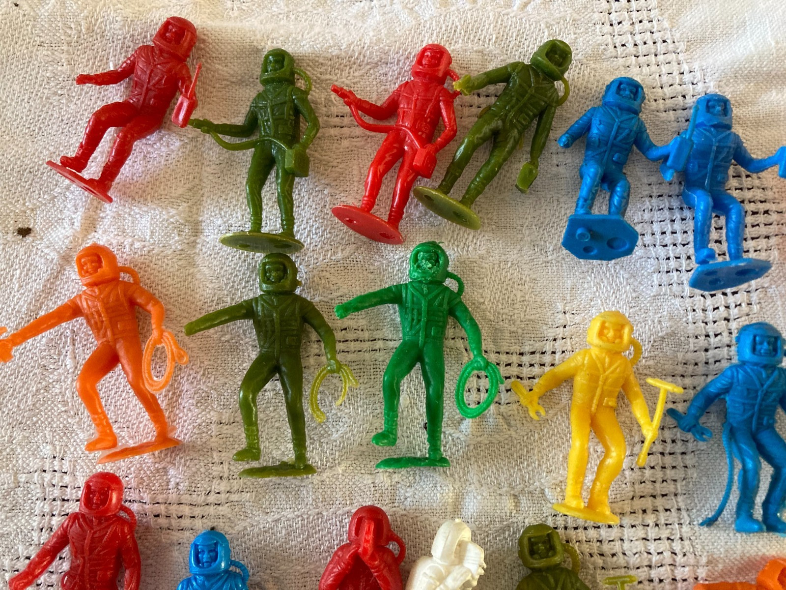 как выглядит Vintage 1960s MPC Plastic Astronaut Figures Assorted Colors Lot of 25 фото