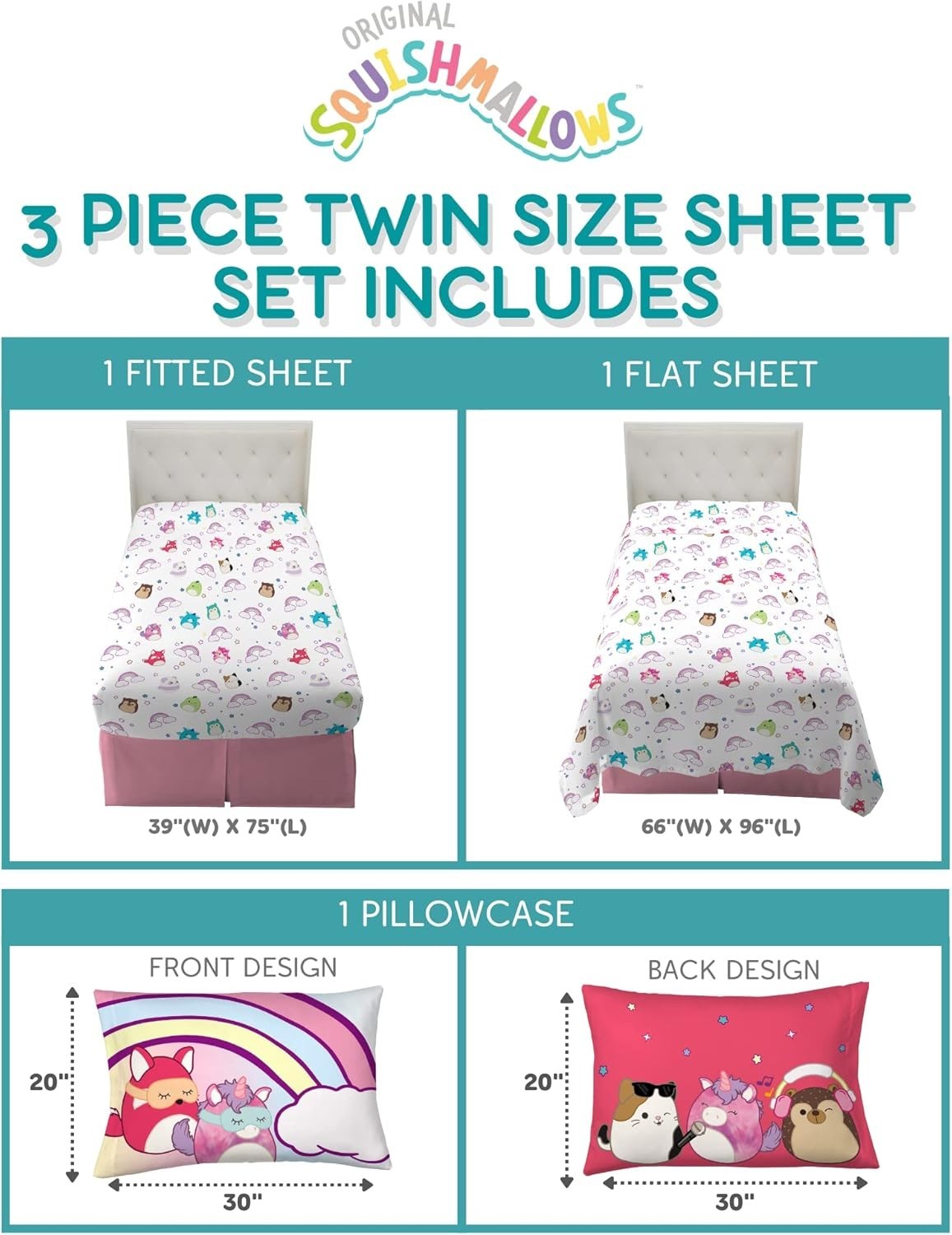 Squishmallows Bedding Super Soft Microfiber Sheet Set,3 pcs, Twin