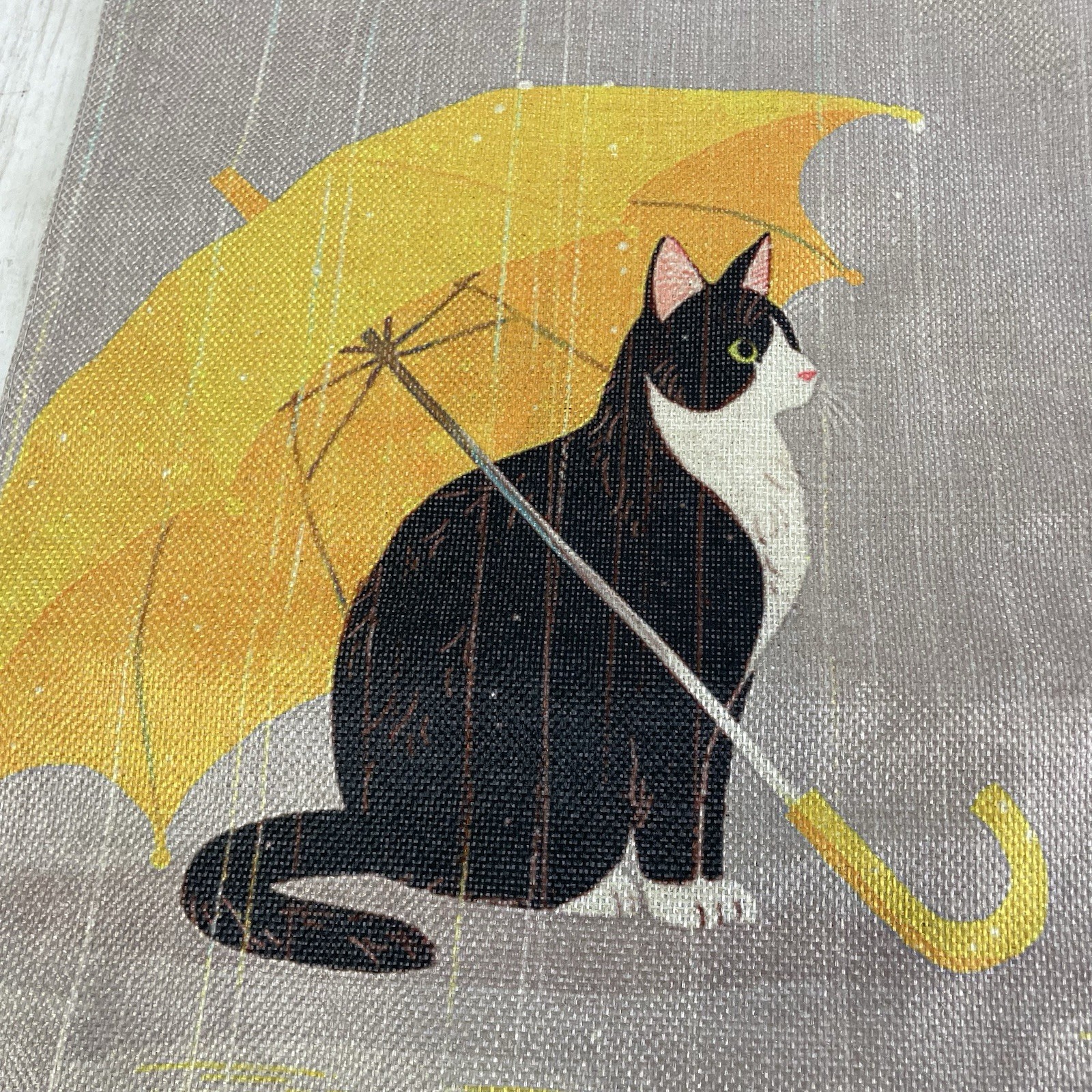 Black White Tuxedo Cat Under Umbrella Welcome Garden Flag 12 X 18 Burlap