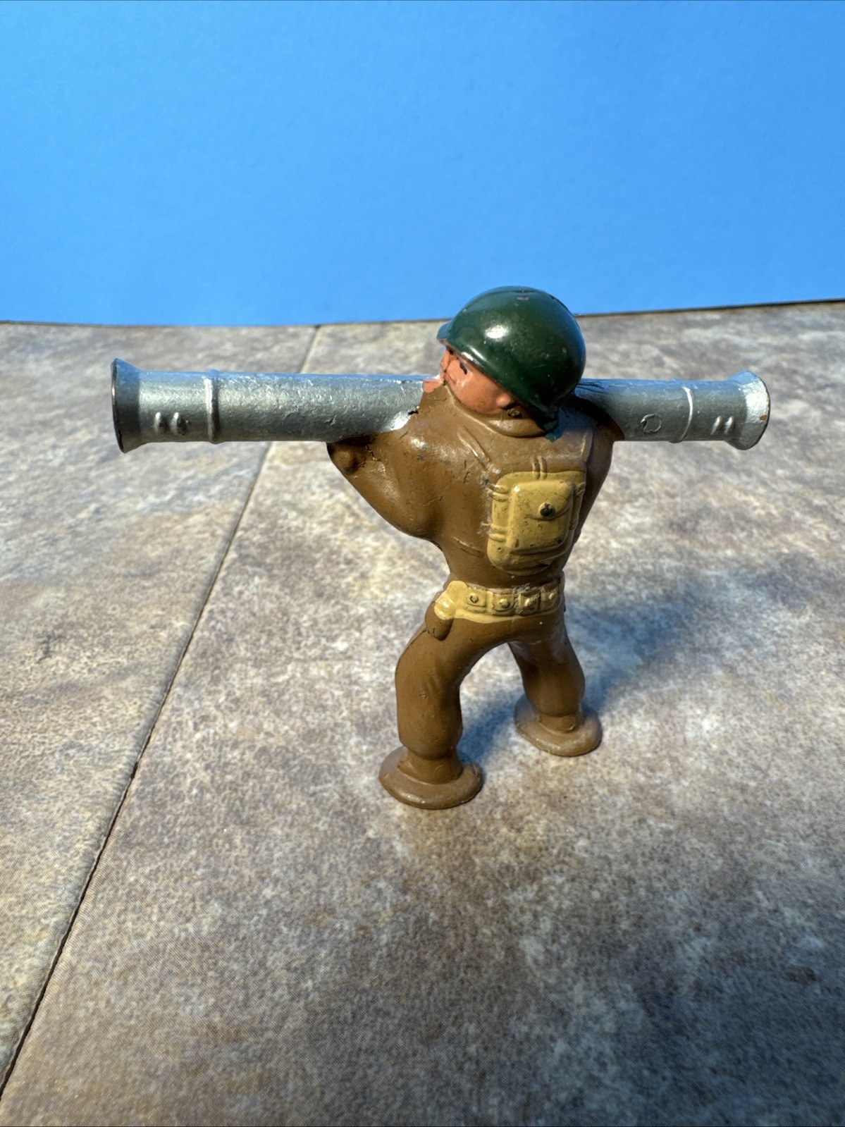 B261 Barclay Podfoot Toy Soldier with Bazooka Silver Tube Pod Foot Dimestore
