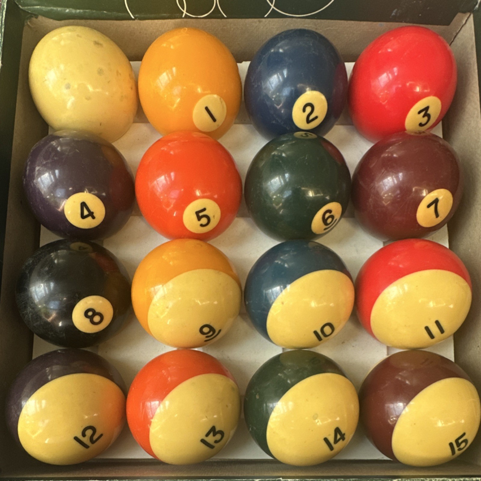 Vintage Complete Billiard Ball Set Numbered Striped Solid Balls in Box