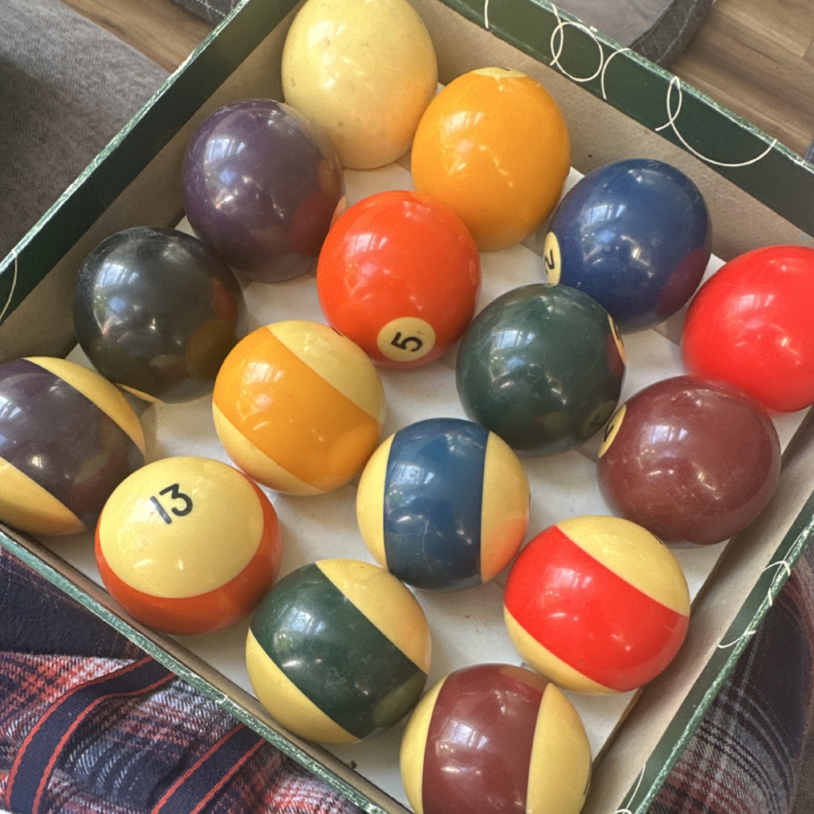 как выглядит Vintage Complete Billiard Ball Set Numbered Striped Solid Balls in Box фото