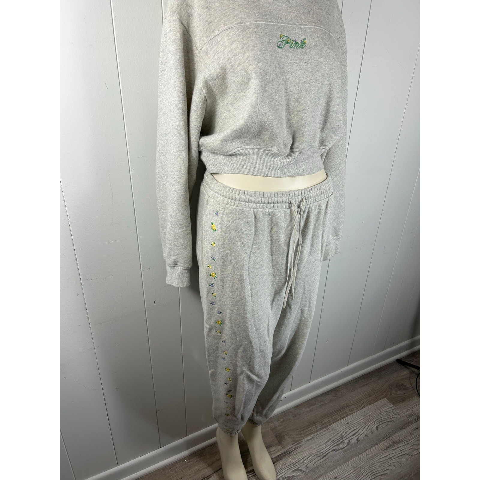 как выглядит Victorias Secret 2 pc PINK Rare Floral Light Gray Sweat Set in Size M/L фото