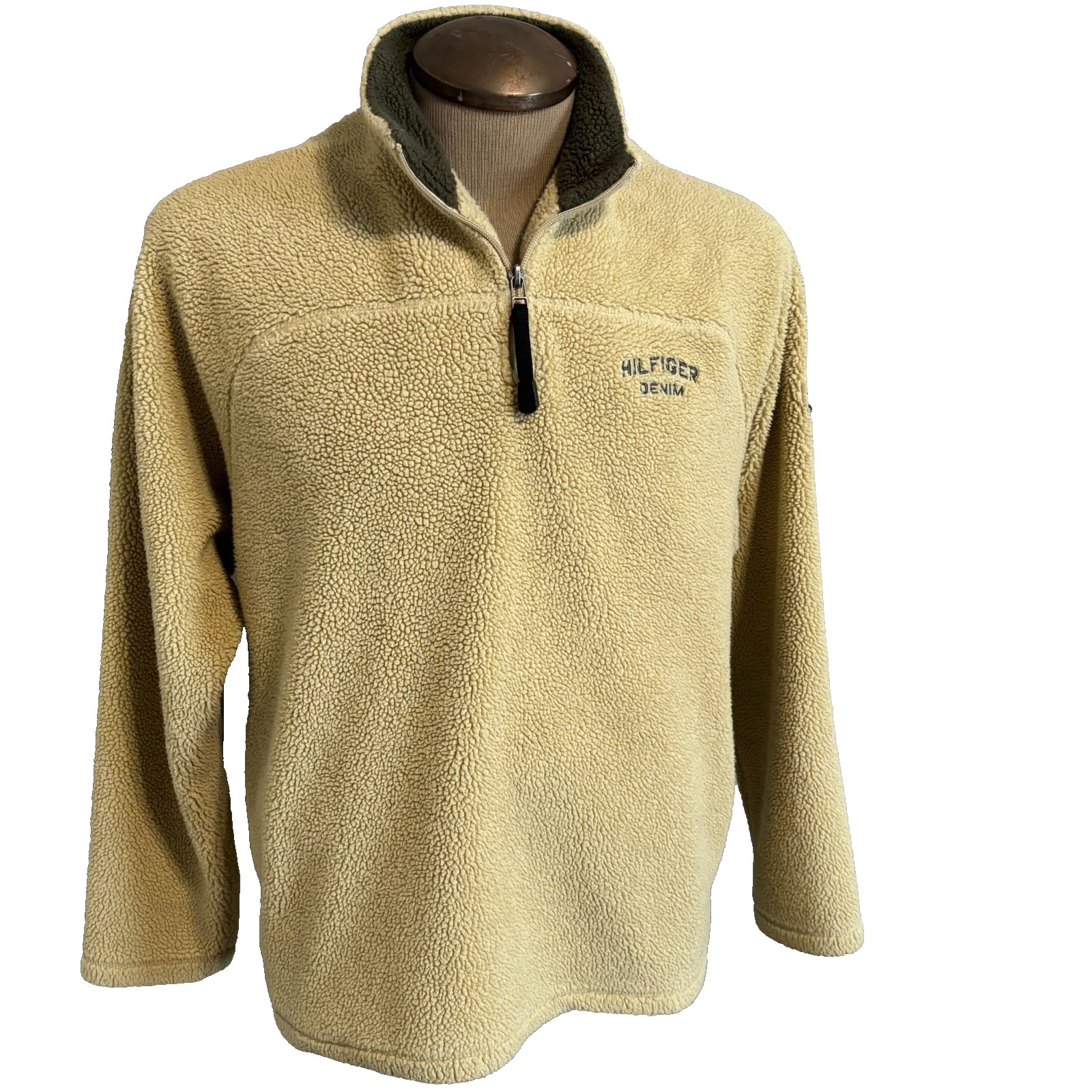 VTG TOMMY HILFIGER Sherpa 1/4 Zip Fleece Spell Out Flag Elbow Patches Y2K 90s M