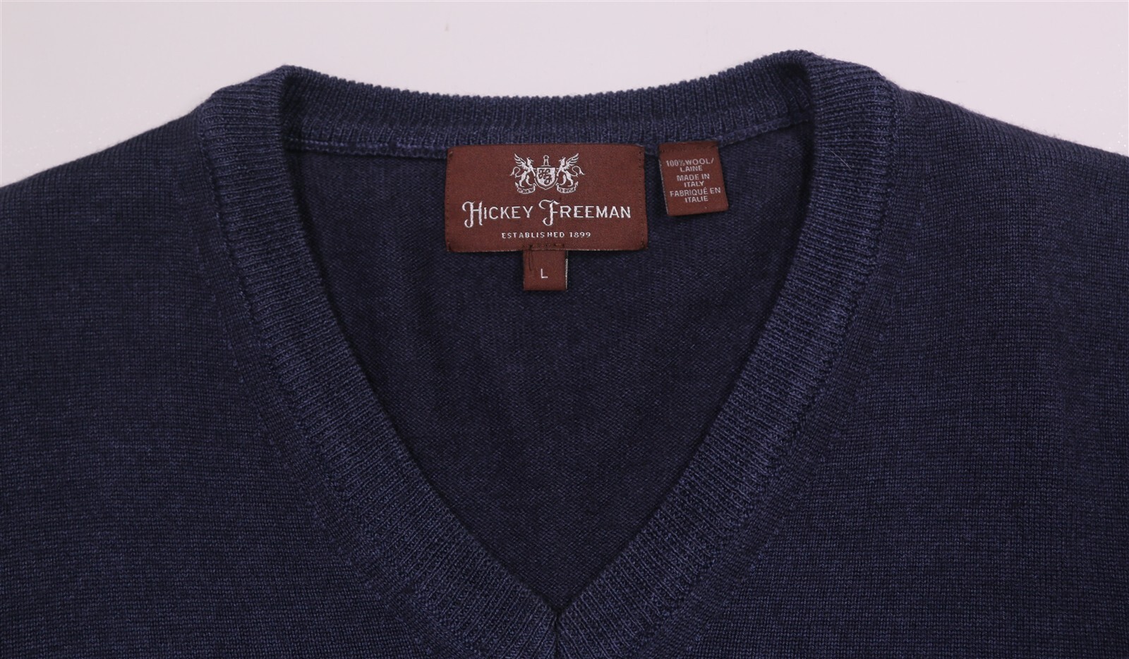 Hickey Freeman Mens Sweater Blue 100 Wool Knit V-Neck Classic Pullover Large