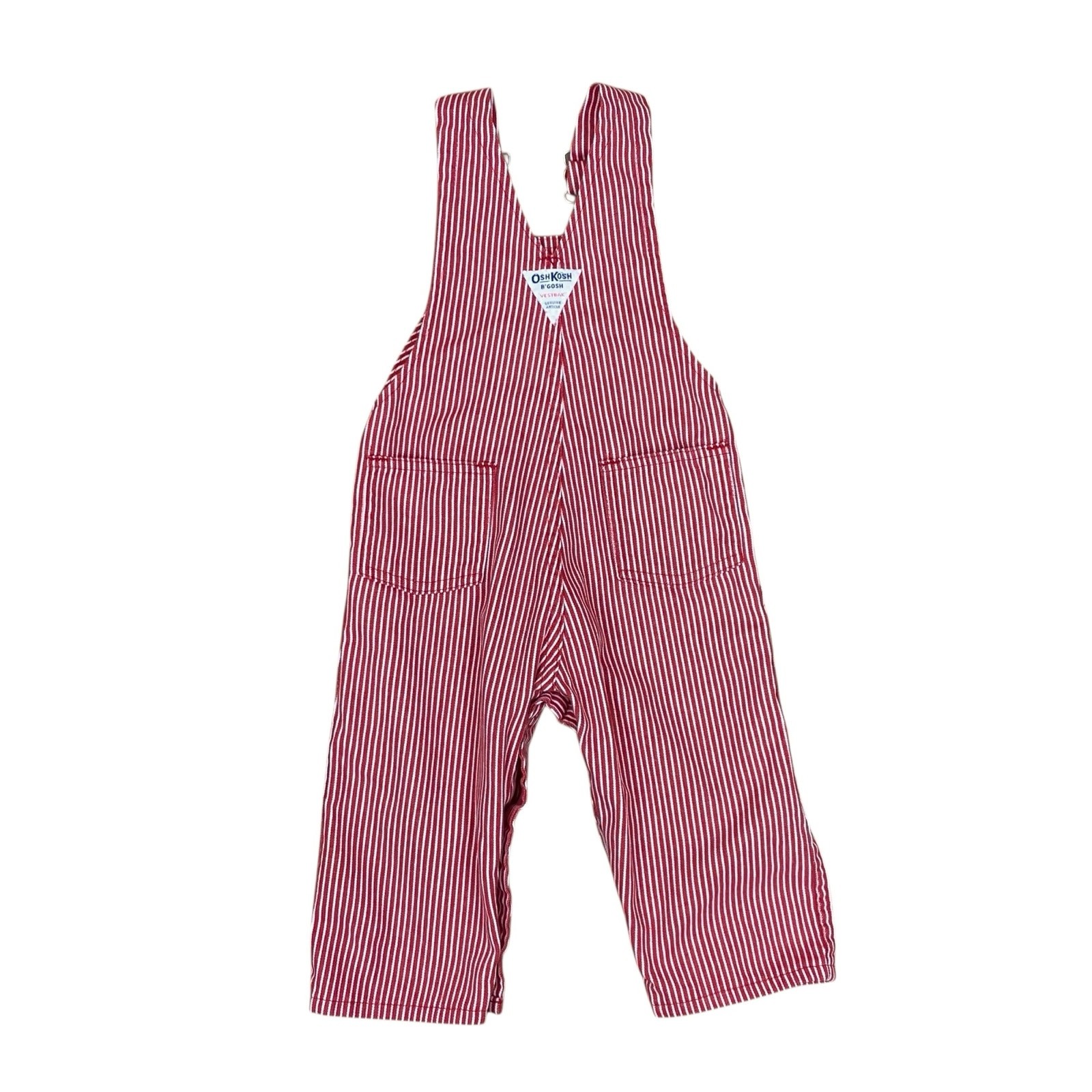 Vtg Osh Kosh B'Gosh 24 Mo Vestbak Overalls Red Hickory Stripe Railroad USA Made