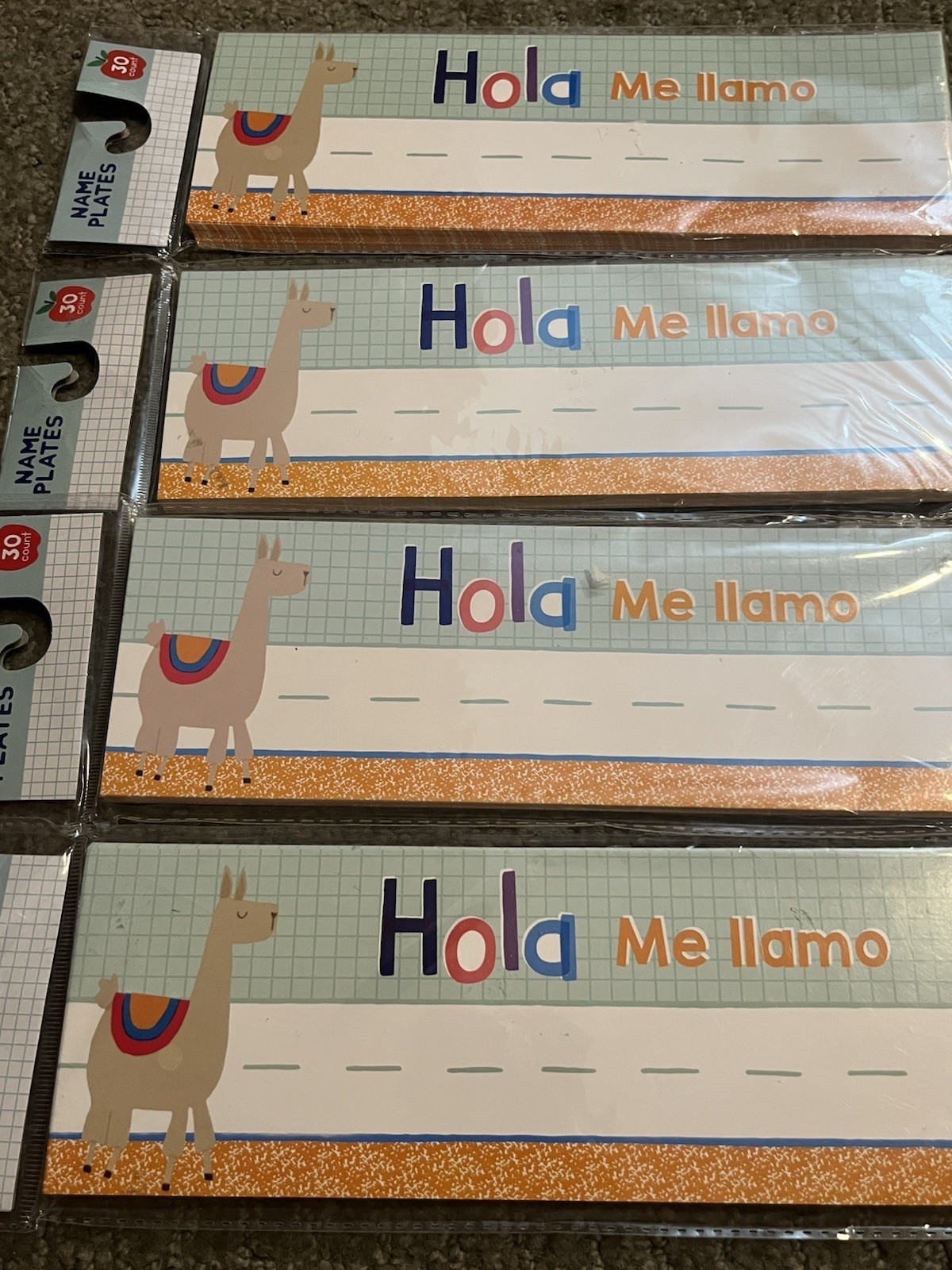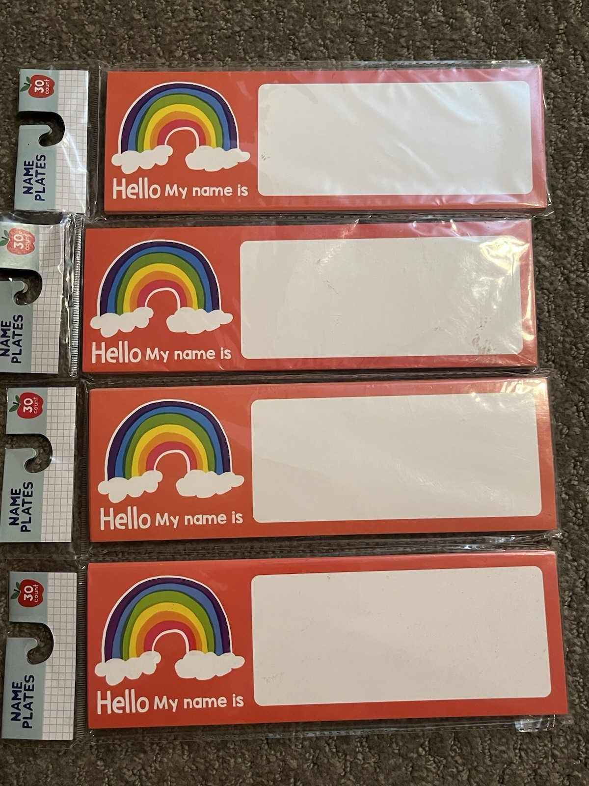 Name Plates - 10 Packs - Spanish And English - Brand New, 30 Count Each Rainbow