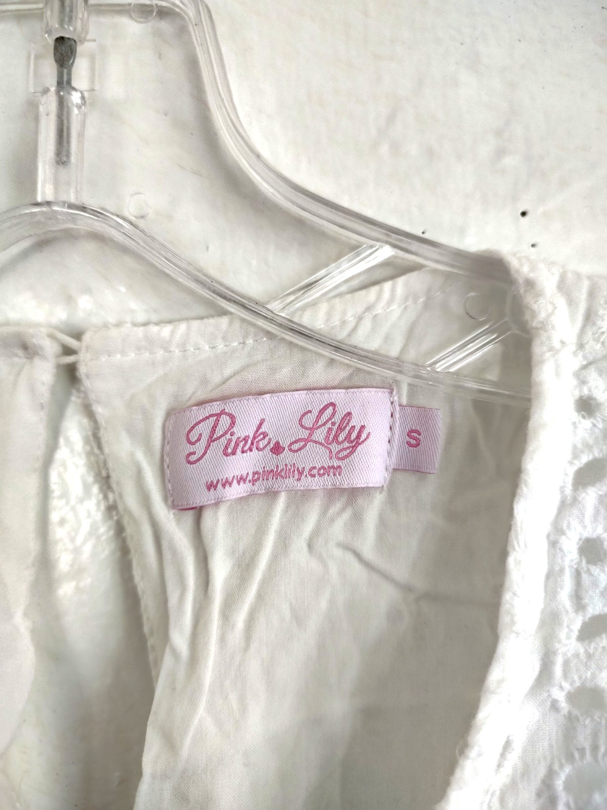 White Lace Embroidered Eyelit Babydoll Dress Size S Eyelit Ruffle Sweet Coquette