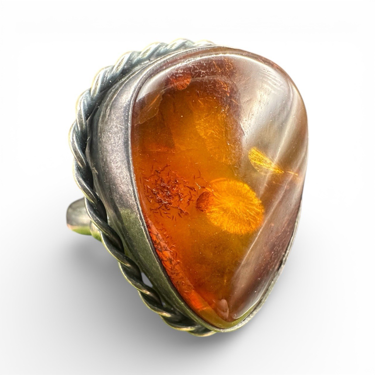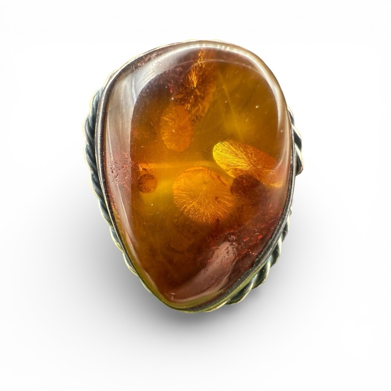 как выглядит Vtg BIG Sterling Silver Chunky Baltic Cognac Amber Ring 8g Polish Marks Sz 9.75 фото