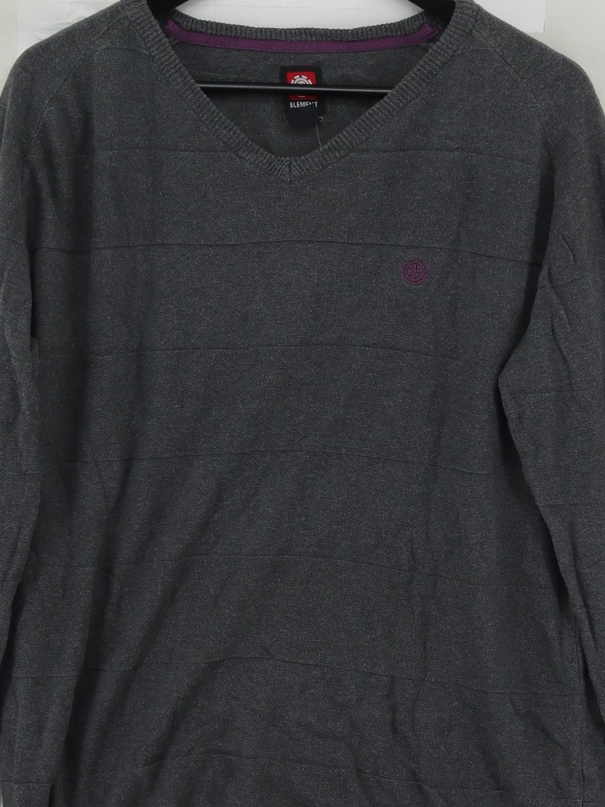 Element Men's Jumper L Grey 100 Cotton V-Neck Pullover
