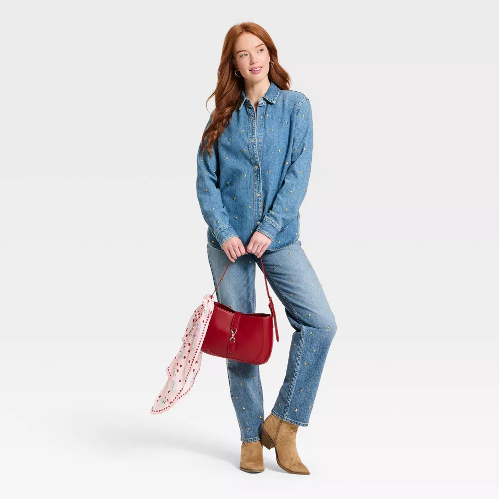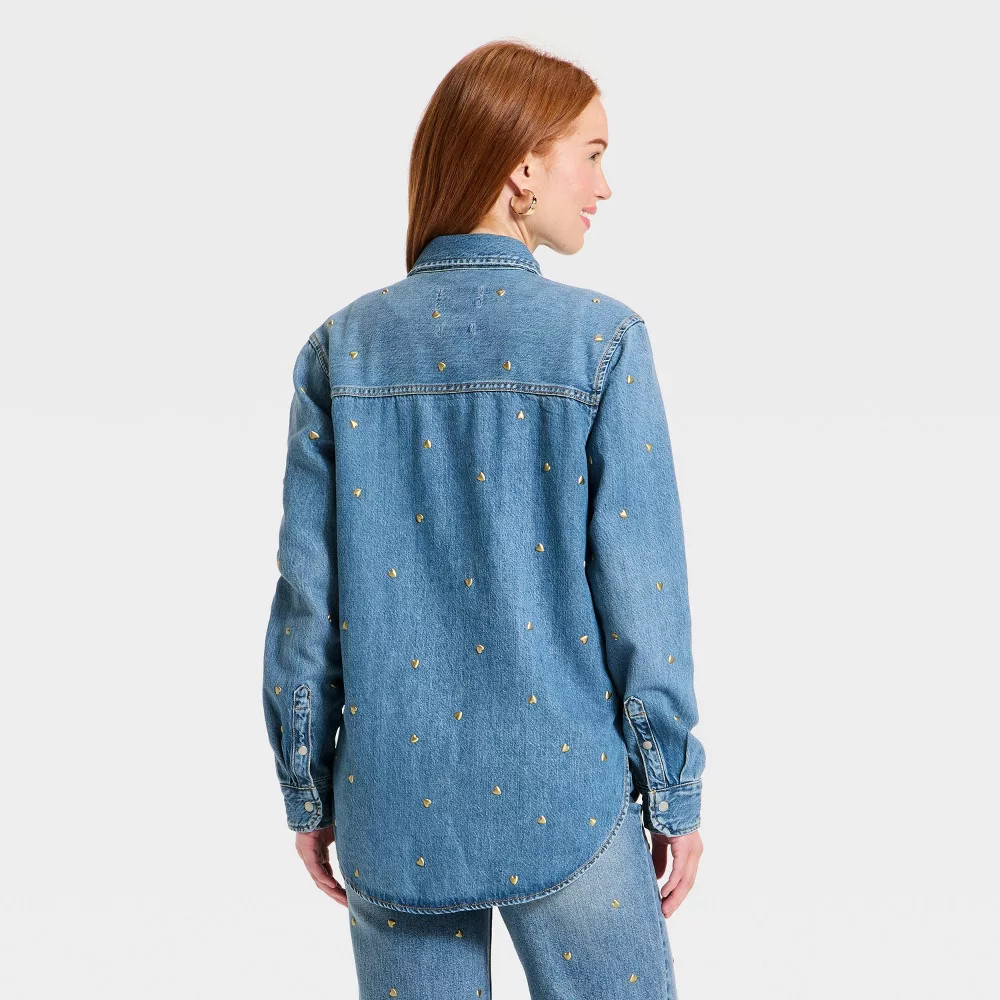 Women's Valentine's Day Relaxed Embellished Denim Shirt - Universal Thread