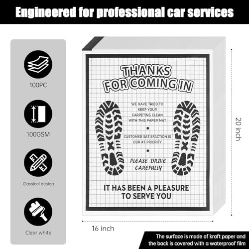 100 Pcs White Paper Floor Mats for Cars, 16x20 Disposable Auto White 100Pcs