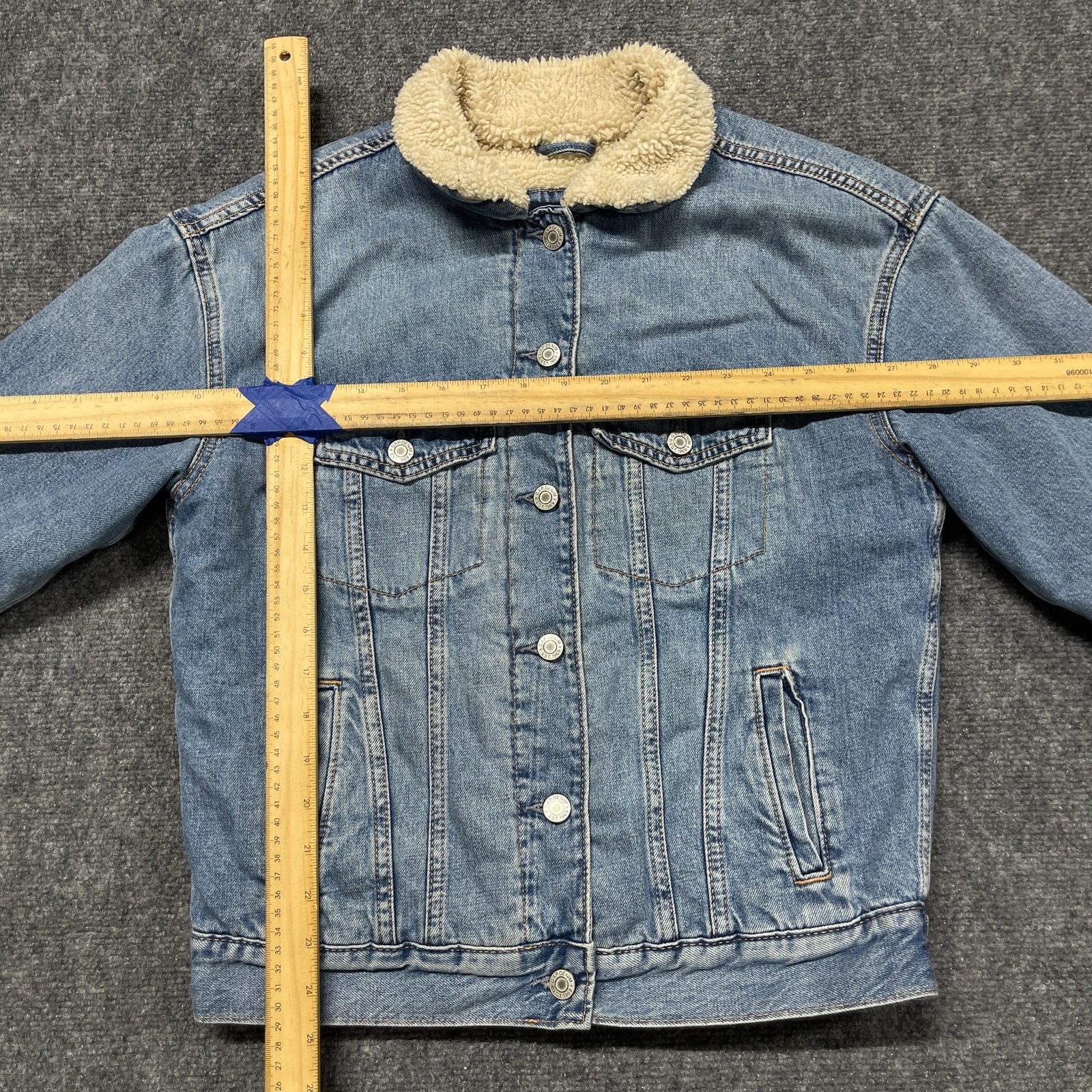 как выглядит Gap Trucker Jacket Girls Teen 10 Blue Denim Cotton Sherpa Lined Cozy Winter Wear фото