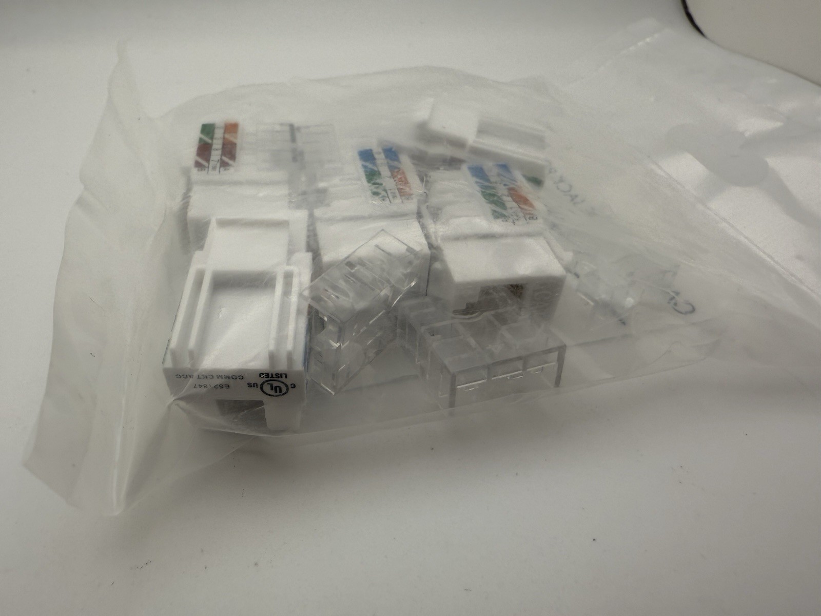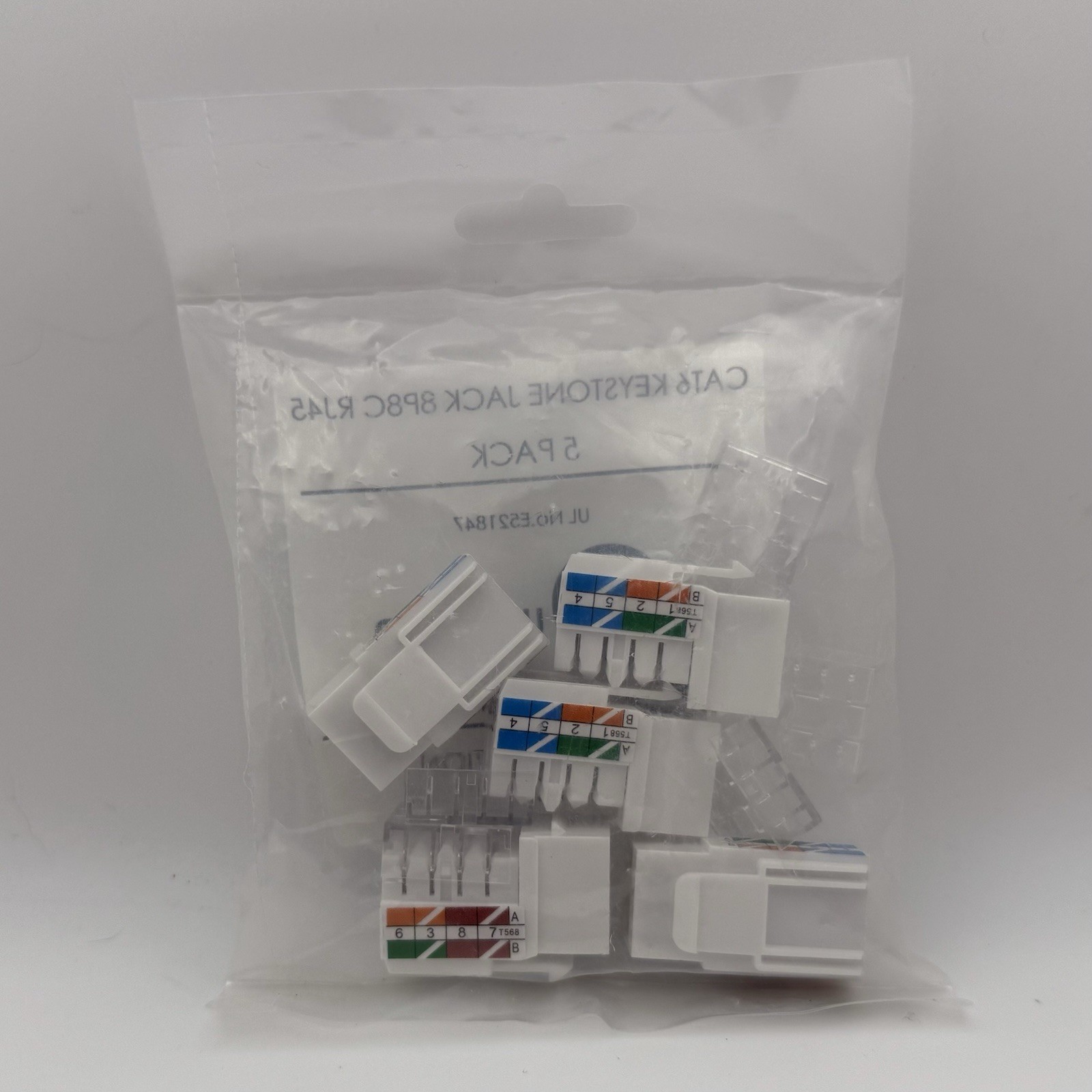 как выглядит Cat6 White Keystone Jack 8P8C RJ45 Punch Down Network Connector 5 Pack фото