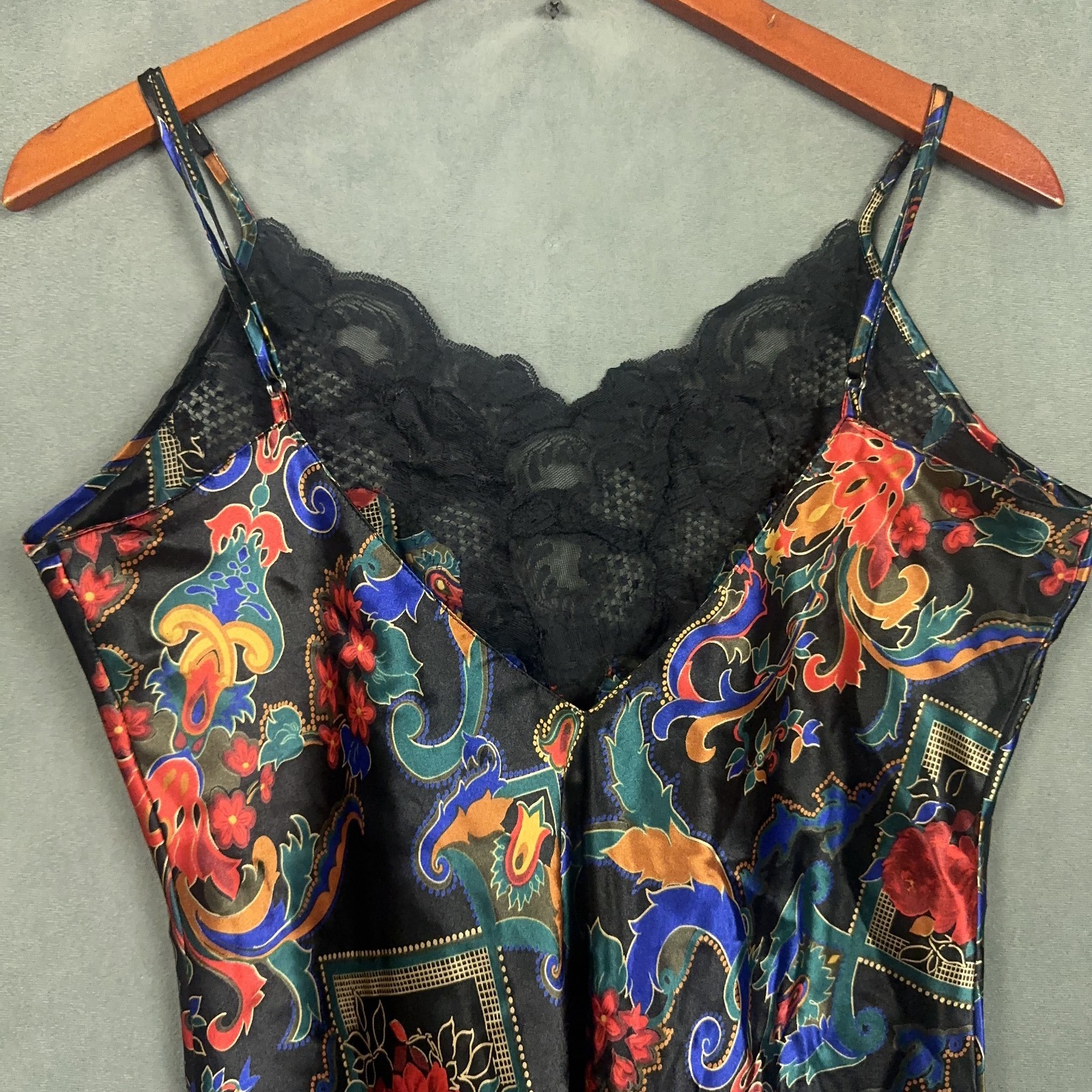 Vintage Victoria s Secret Gold Label Babydoll Slip Black Paisley Lace Size M