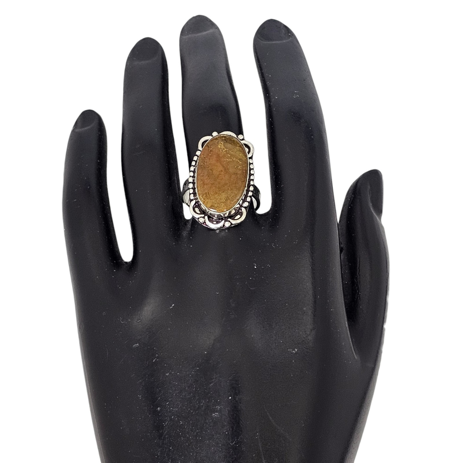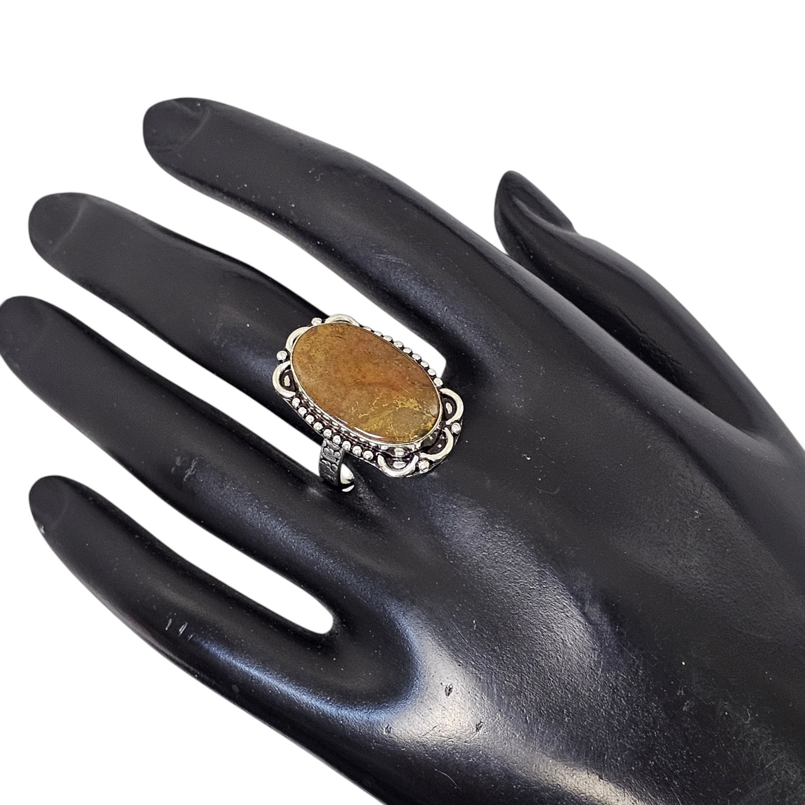 как выглядит Sterling Silver Oval Picture Jasper Ring Boho Statement Jewelry Ornate Design фото