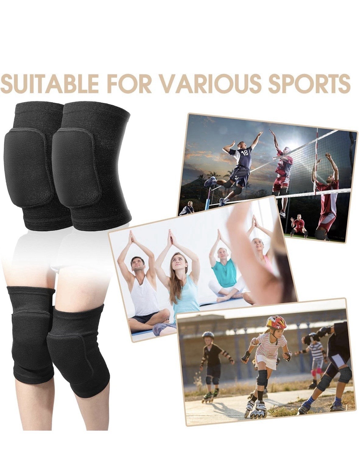 как выглядит 12 Soft Breathable Knee Pads for Dancers Football Volleyball Men Women M Black фото