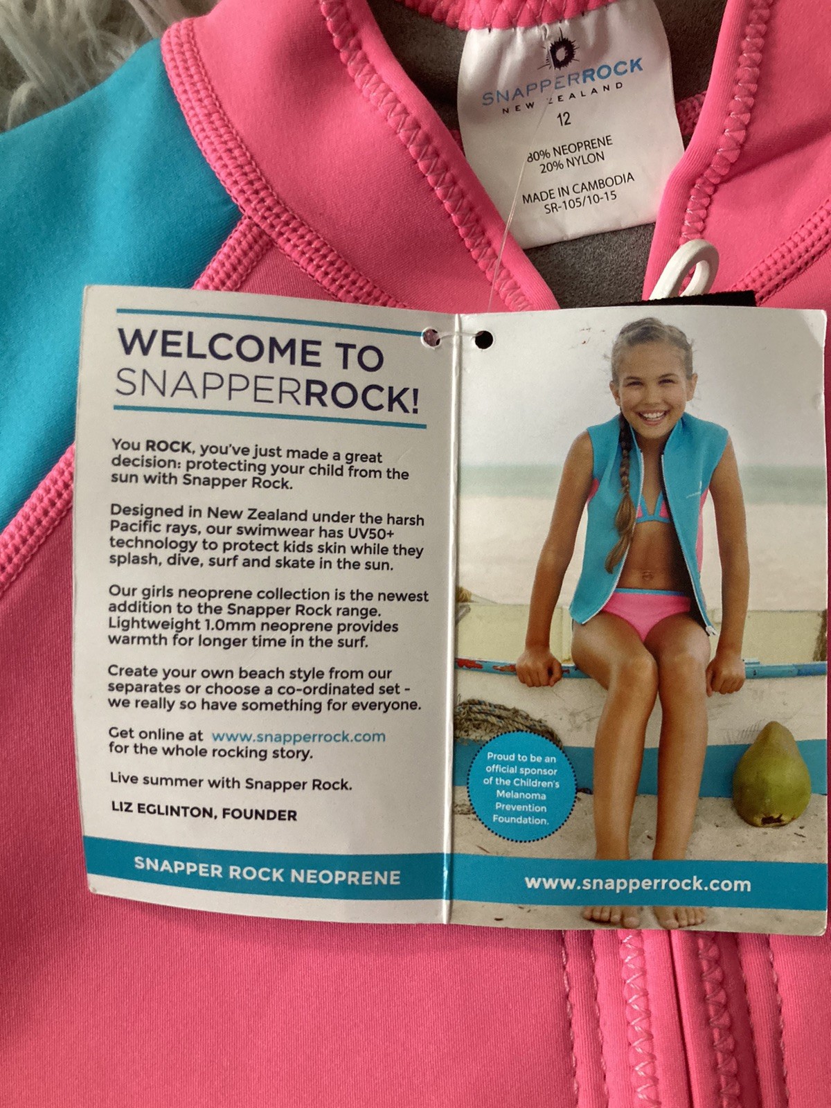 Snapper Rock Girl s Swim Rash Top Longsleeve Swimwear Full Zip Size 12 NEW W TAG