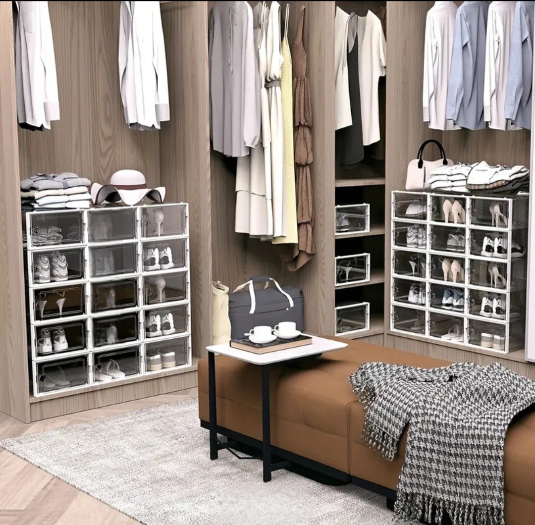 как выглядит 12/24/36 Packs XL Clear Drop Side Shoe Boxes Stackable Sneaker Storage Display фото