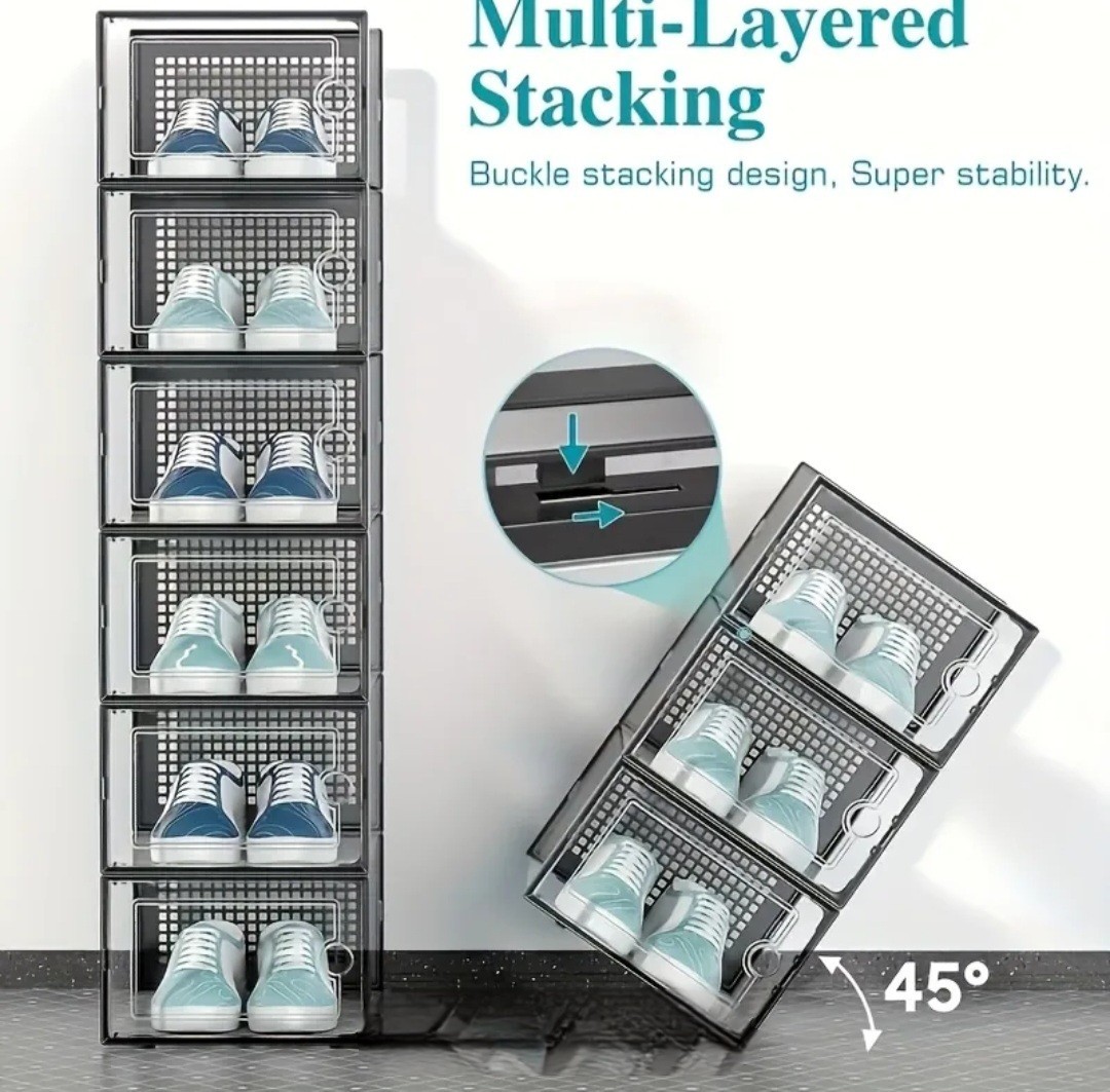 12/24/36 Packs XL Clear Drop Side Shoe Boxes Stackable Sneaker Storage Display