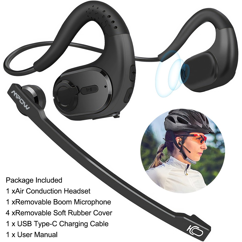 Mpow Bluetooth Headset Open Ear Headphones with Removable Noise Cancelling Mic