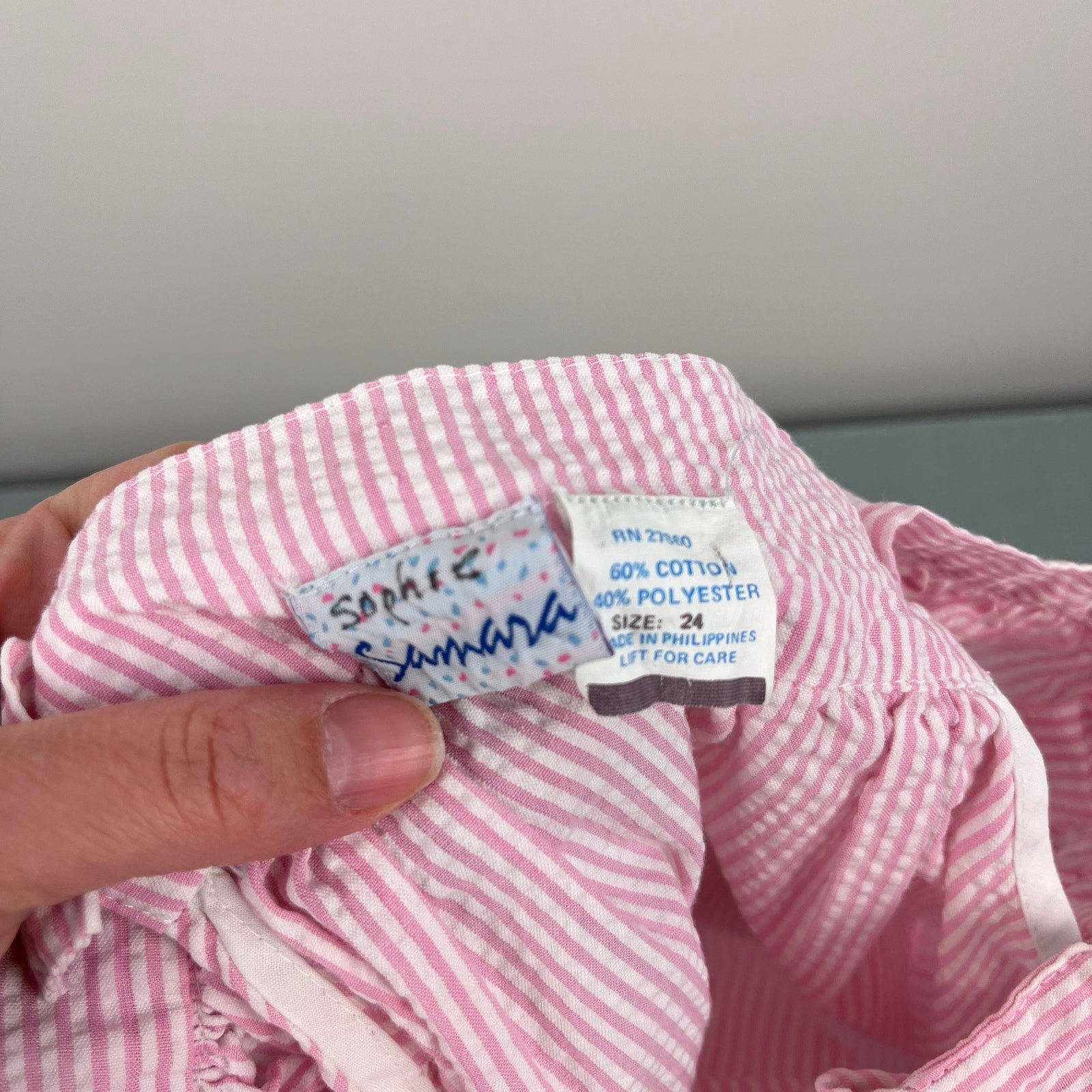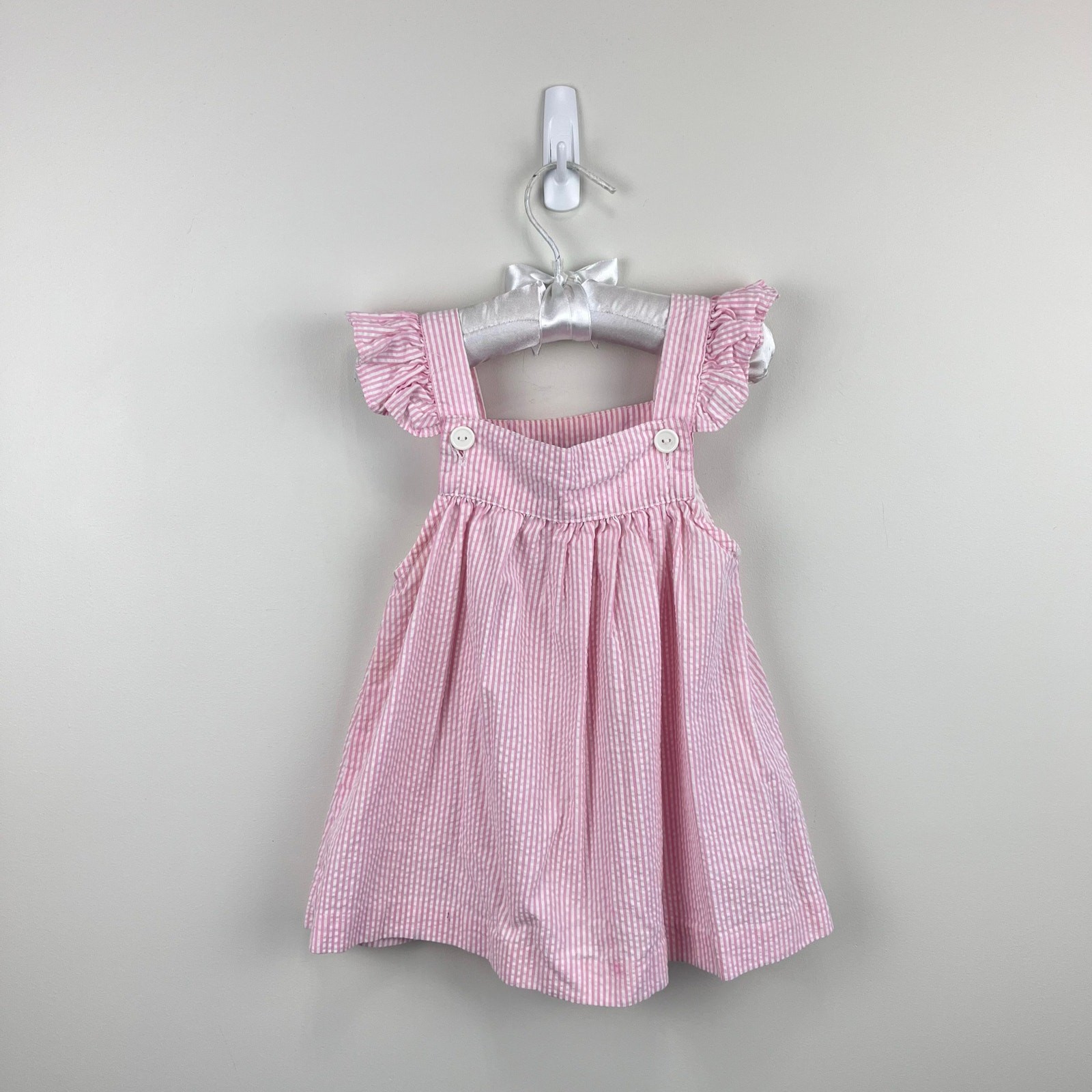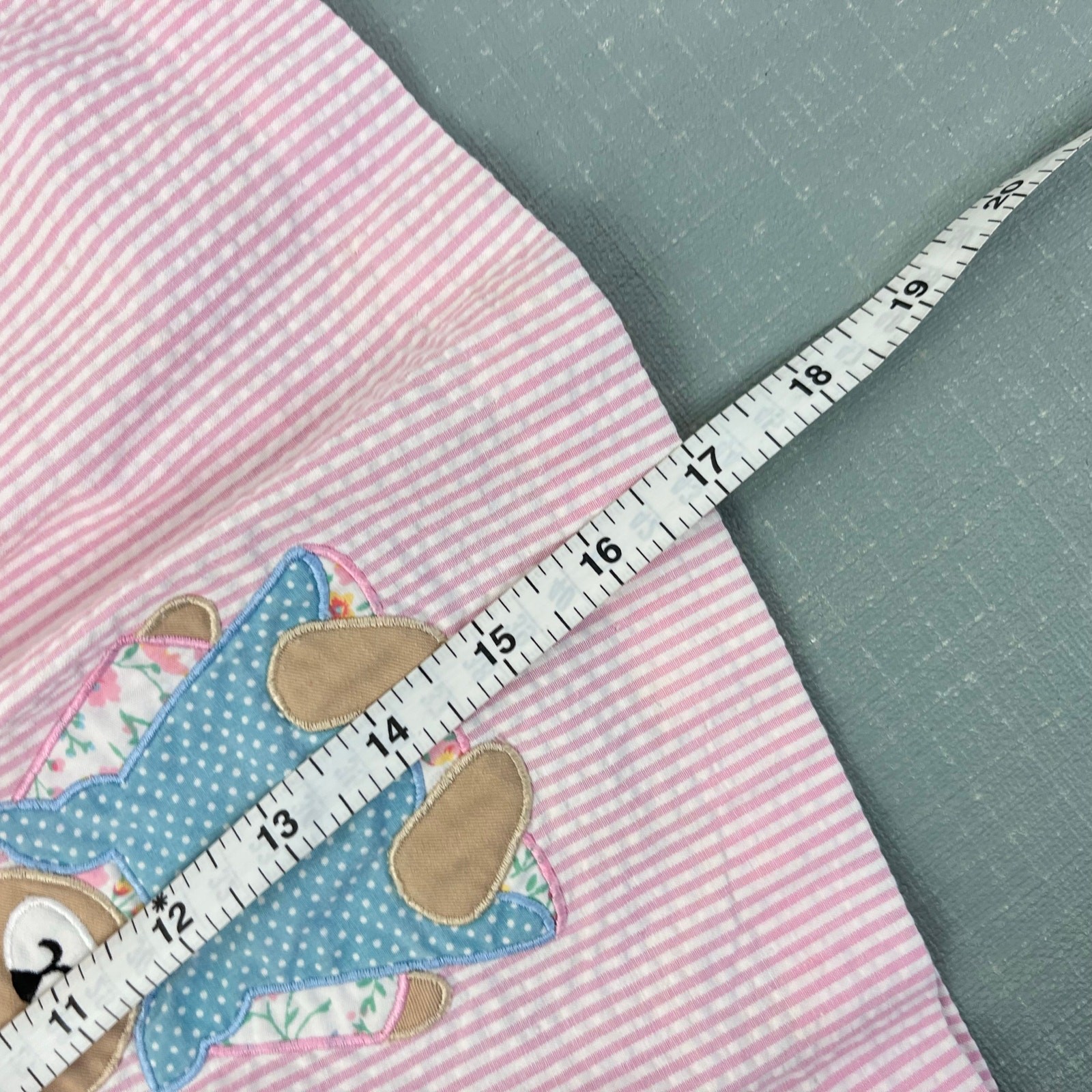 как выглядит Vintage Samara Pink Seersucker Teddy Bear Bow Pinafore Dress 24 Months фото