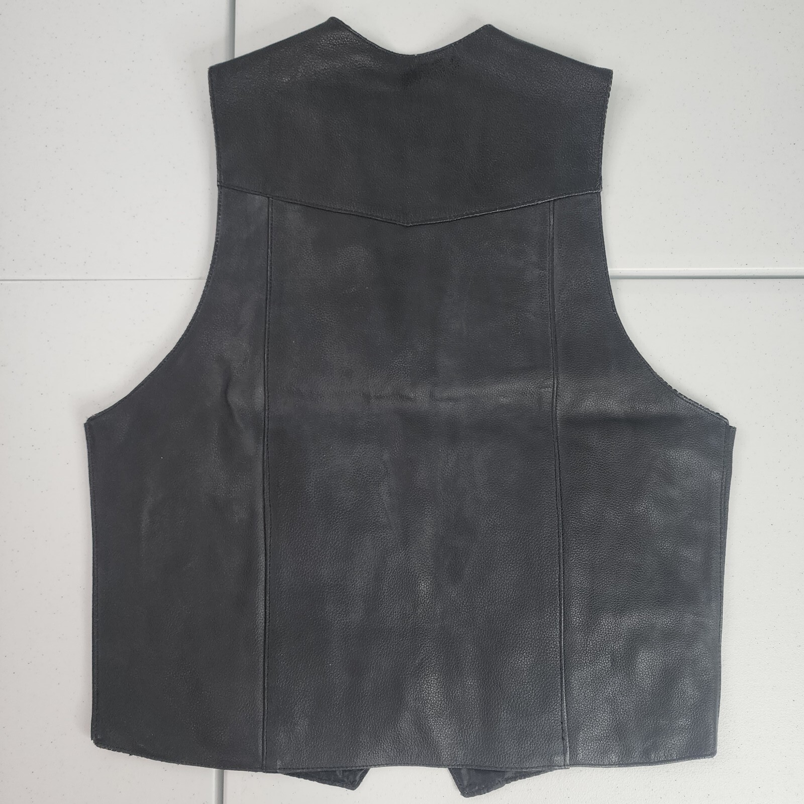 как выглядит Unbranded Men 44 Genuine Leather Black Conceal Pockets Motorcycle Biker Vest фото