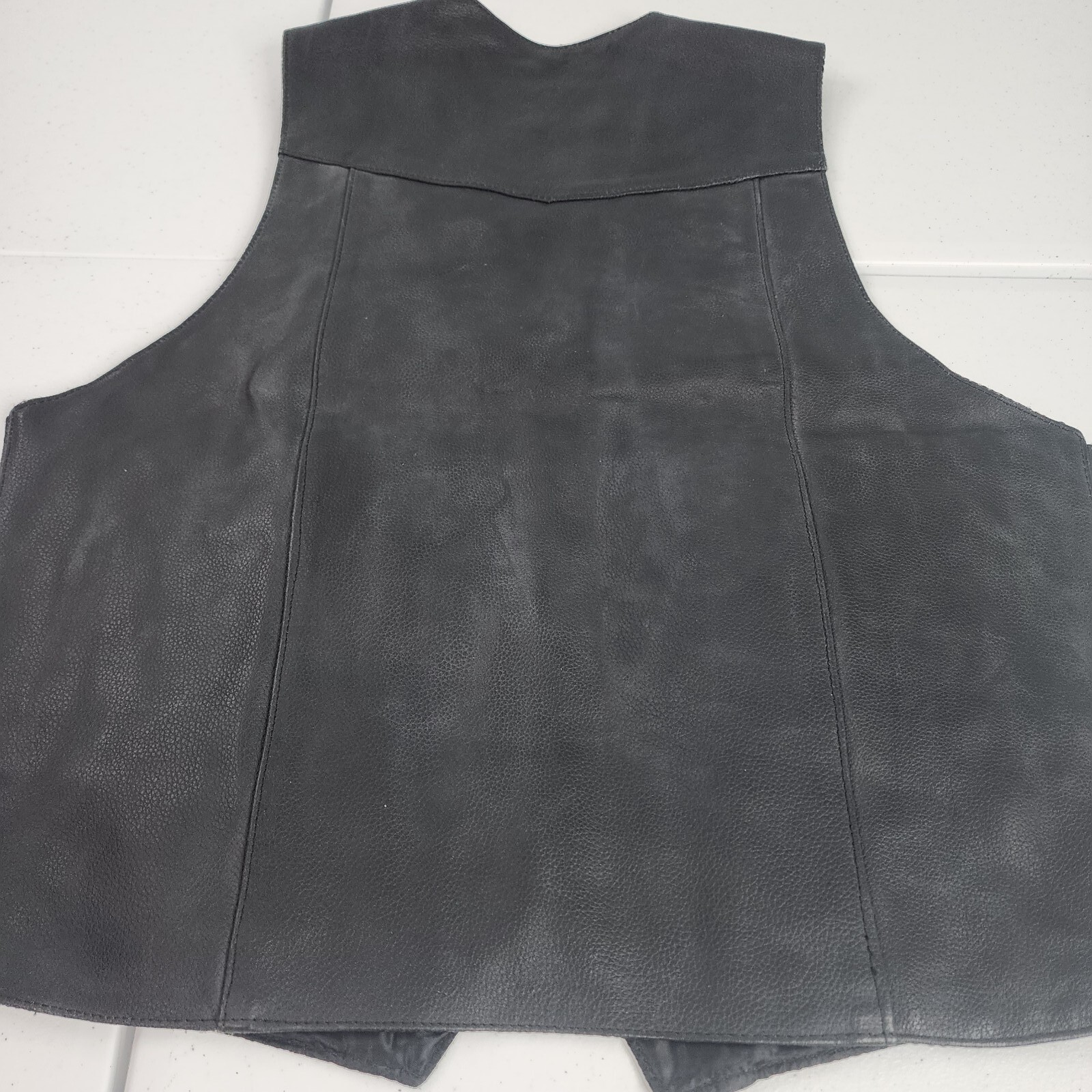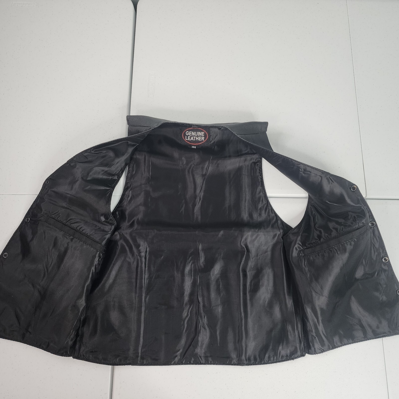 Unbranded Men 44 Genuine Leather Black Conceal Pockets Motorcycle Biker Vest