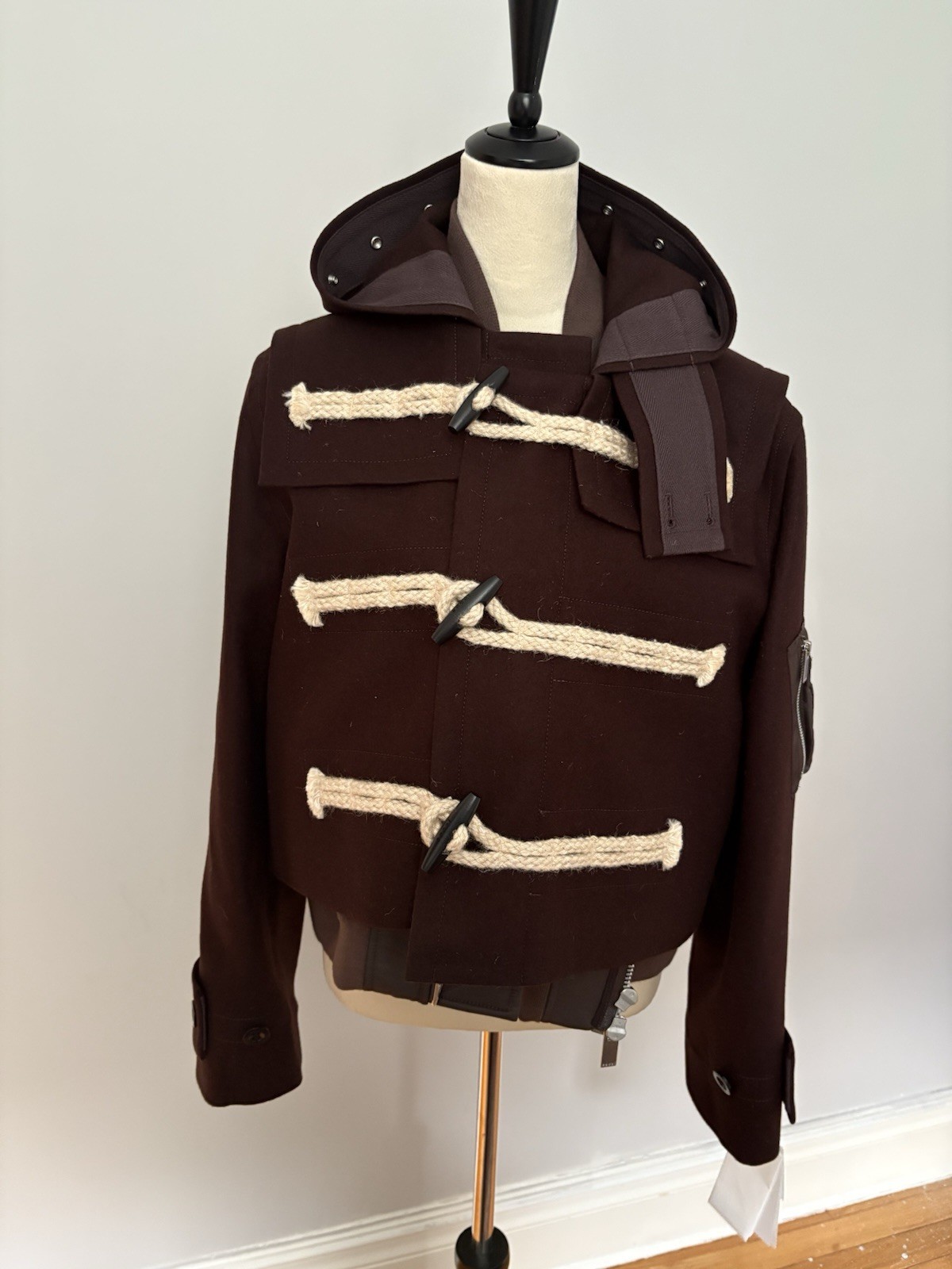 как выглядит Sacai Wool Blend Hooded Jacket NWT Sz 4 XLarge Brown 1890 фото