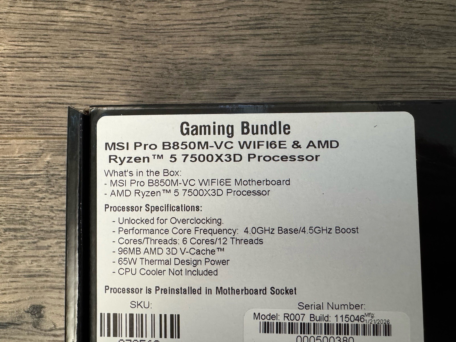 Ryzen 5 7500X3D MSI PRO B850M-VC WIFI6E G.Skill Flare 16GB DDR5 RAM /Bundle