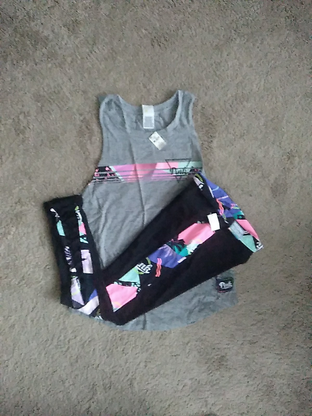 как выглядит Victorias Secret Pink Tropical Retro Neon Ultimate Legging Tank Set S/M фото