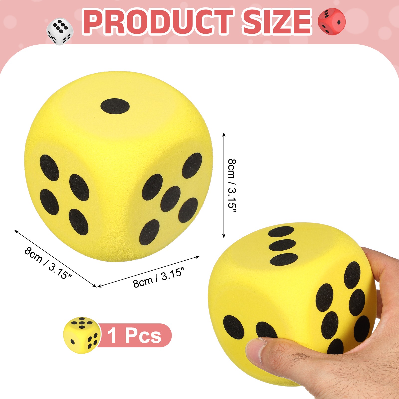 Foam Dice, 8cm/3.15inch Six-Sided Dice Stress Ball Yellow
