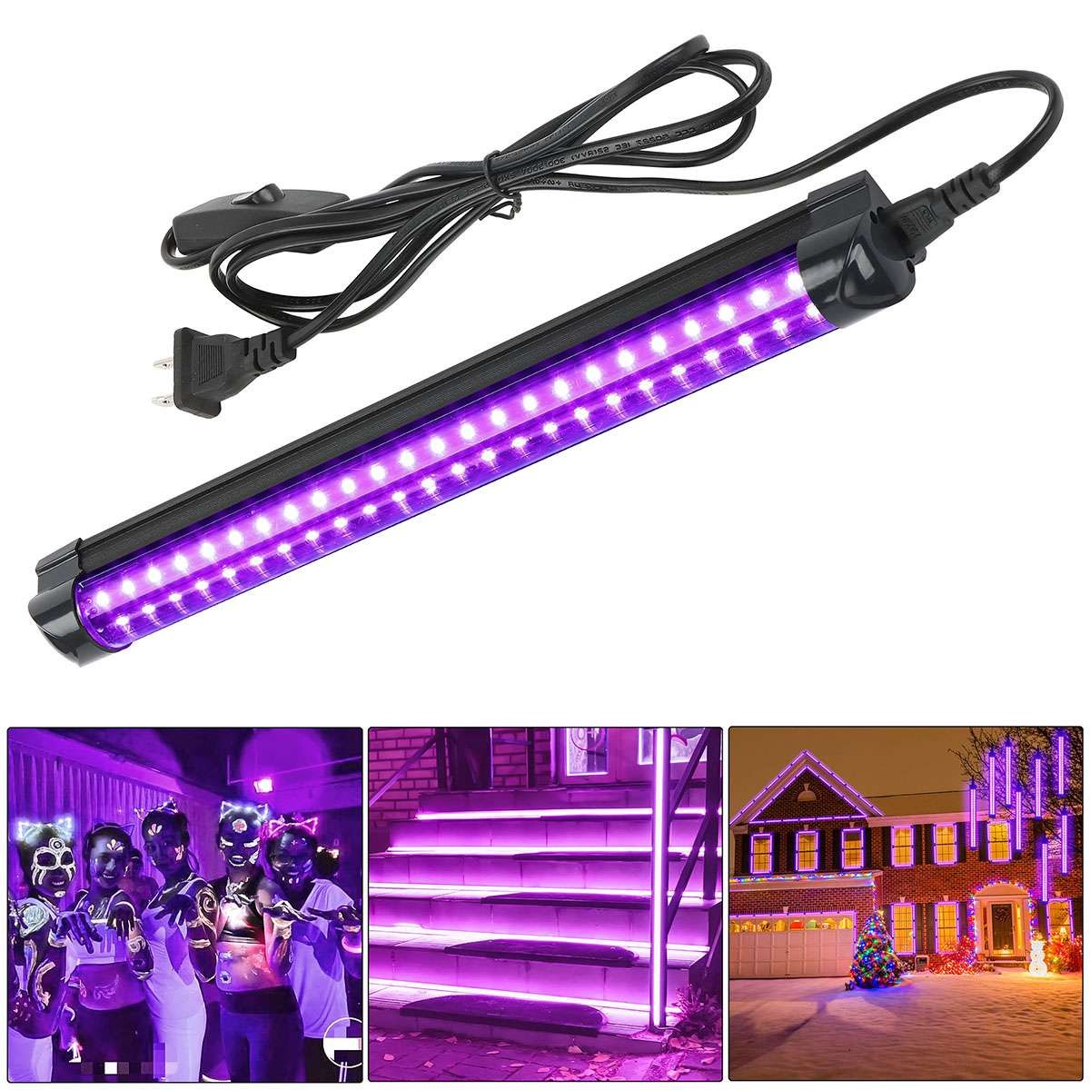 48LED UV Black Light Bar Fixtures Ultraviolet Lamp US Strip Plug Party Club 2PCS