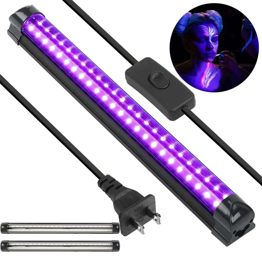 как выглядит 48LED UV Black Light Bar Fixtures Ultraviolet Lamp US Strip Plug Party Club 2PCS фото