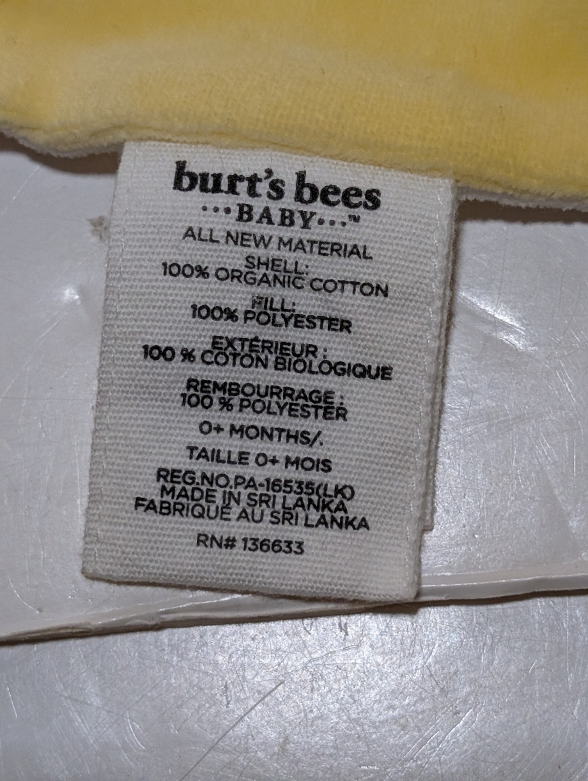 Burt's Bees Lovey Bumble Bee Baby Security Blanket Yellow Lovey Organic Cotton