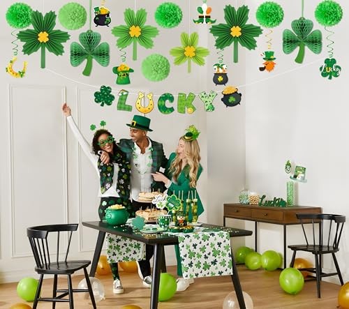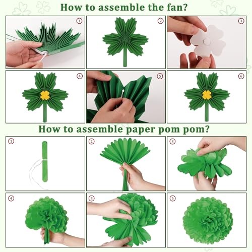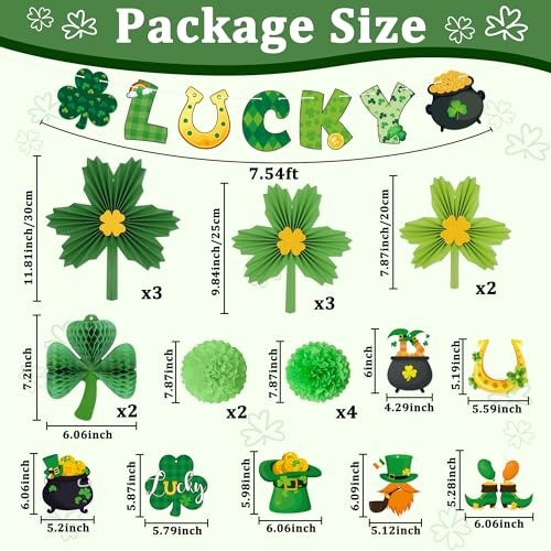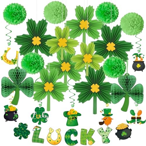 24Pcs St Patricks Day Decorations Shamrock Paper Fans Lucky Banner Honeycomb