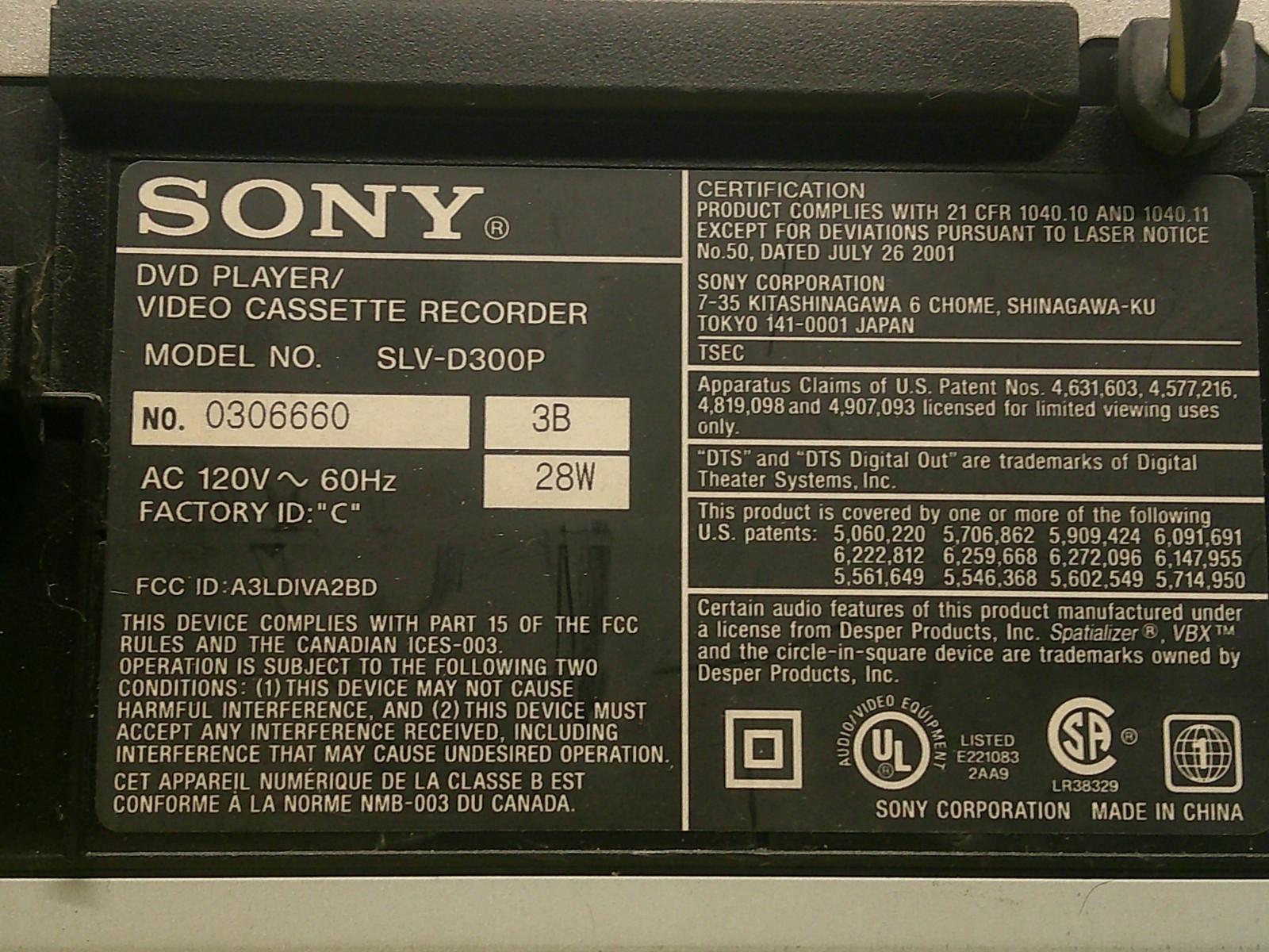 Sony SLV-D300P DVD Player/Video Cassette Recorder combo unit