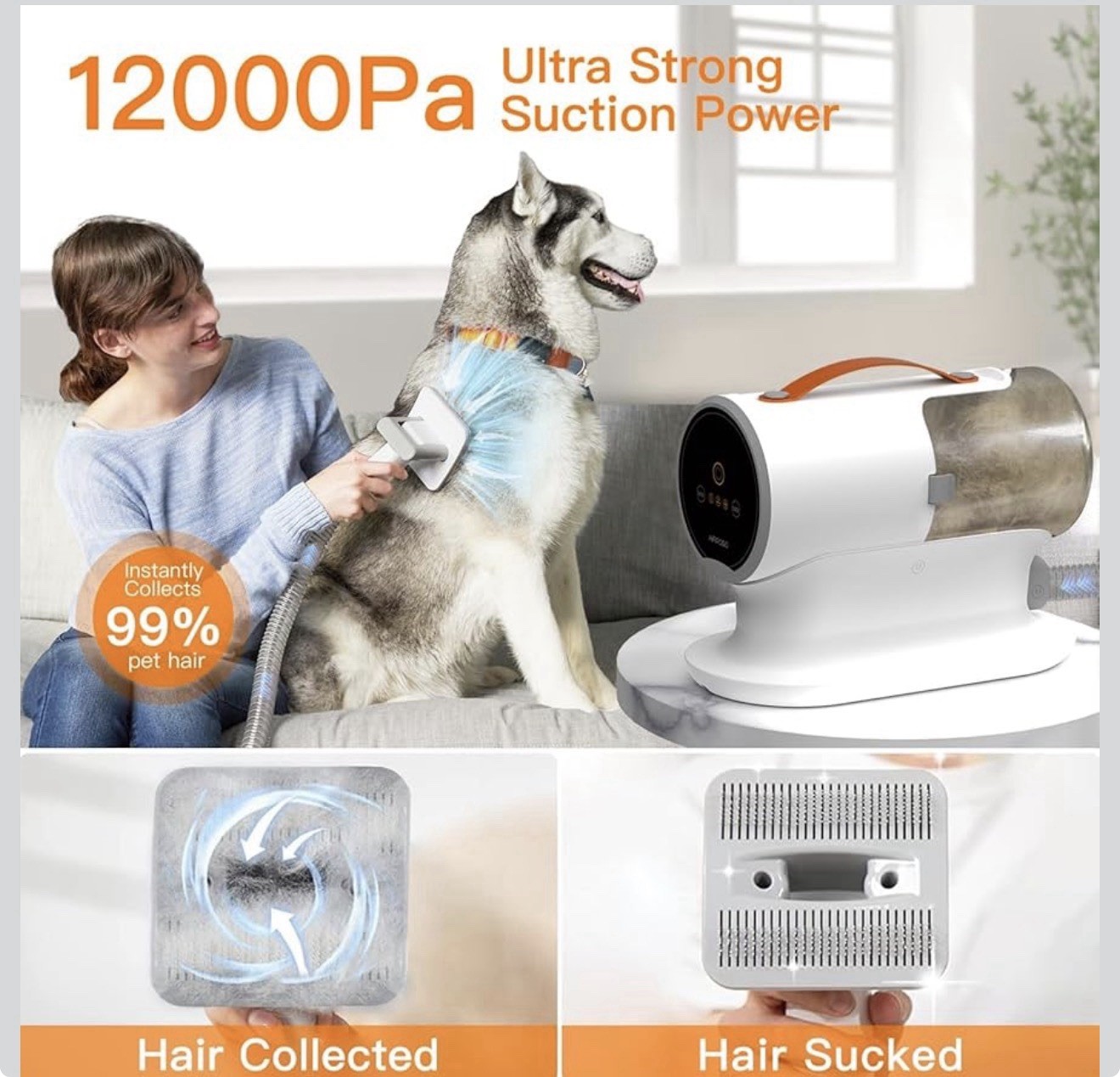 AIRROBO Dog Grooming Vacuum, Dog Grooming Kit,12000Pa Strong Pet Vacuum,2L Large
