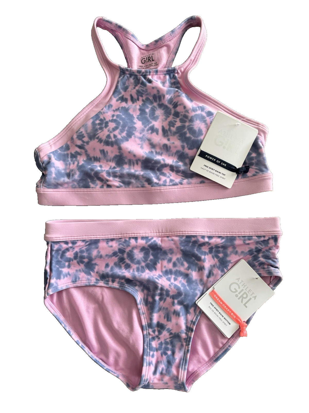 NWT Athleta Girl Free Spirit Bikini 2 Piece Size 16 XL Tie Dye Pink Blue Swim