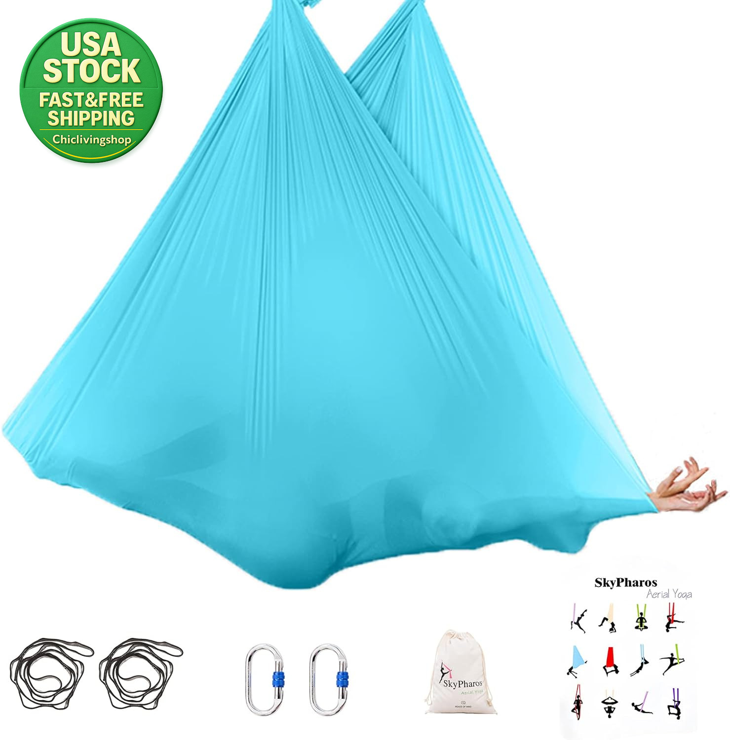 Aerial Silks Yoga Swing Set 5.5 Yards Anti-Gravity Hammock Aqua Blue