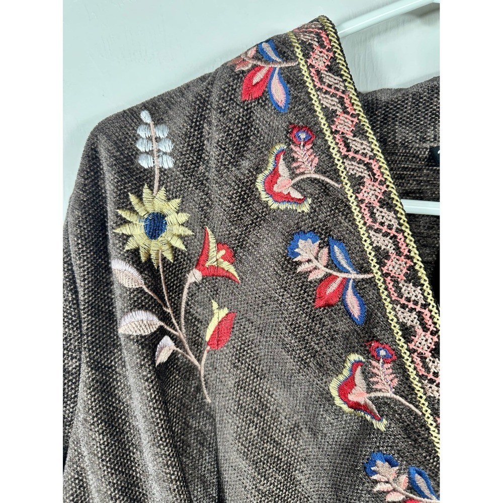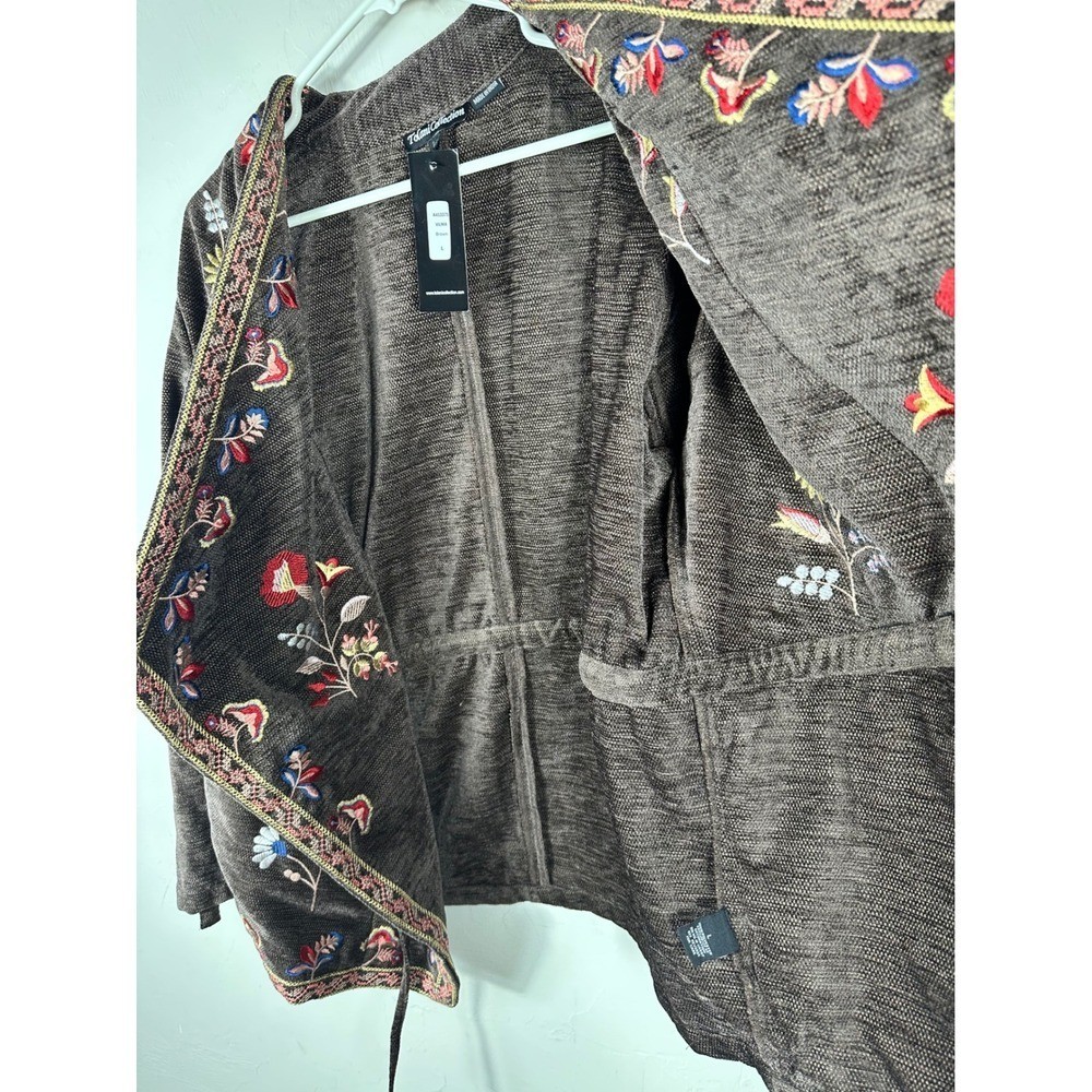 как выглядит Tolani Collection Embroidered Floral Brown Kimono Jacket Womens L NWT фото